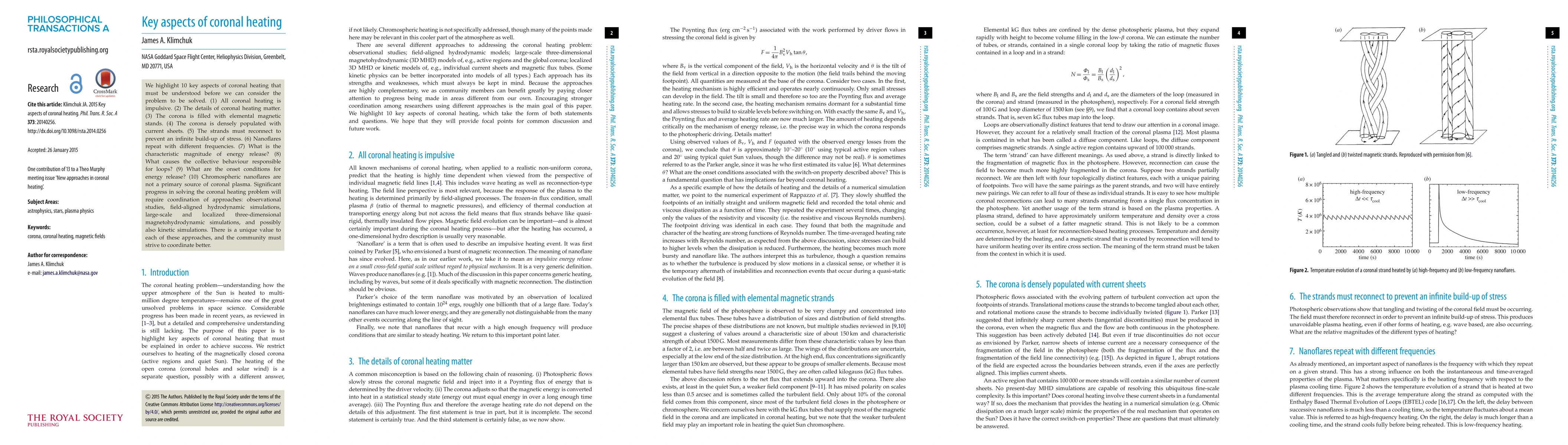 This paper outlines ten critical aspects of coronal heating, emphasizing the need for understanding impulsive heating, magnetic structures, and reconnection processes. It stresses the importance of coordinated observational and simulation studies to advance knowledge in this field.