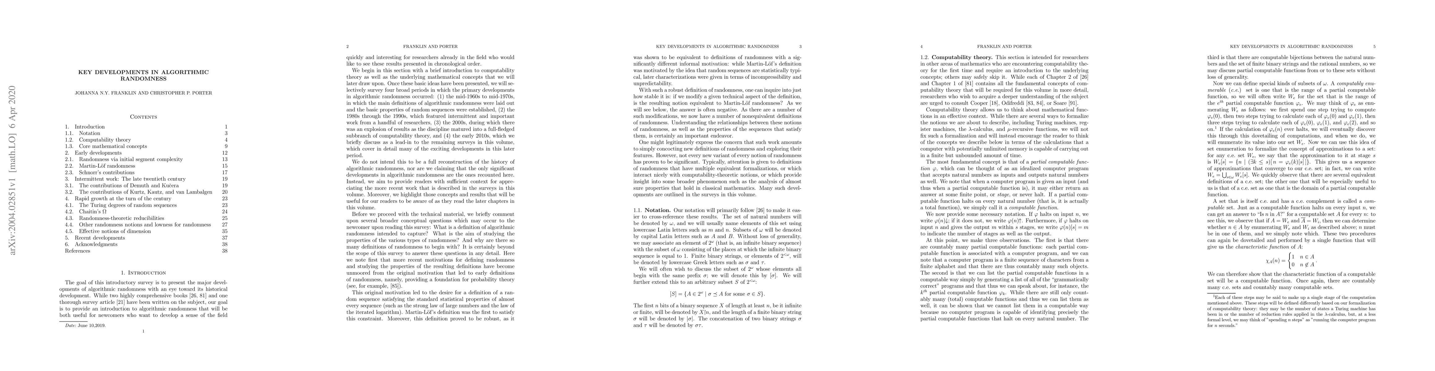 The goal of this introductory survey is to present the major developments of algorithmic randomness with an eye toward its historical development. While two highly comprehensive books and one thorough survey article have been written on the subject, our goal is to provide an introduction to algorithmic randomness that will be both useful for newcomers who want to develop a sense of the field quickly and interesting for researchers already in the field who would like to see these results presented in chronological order.