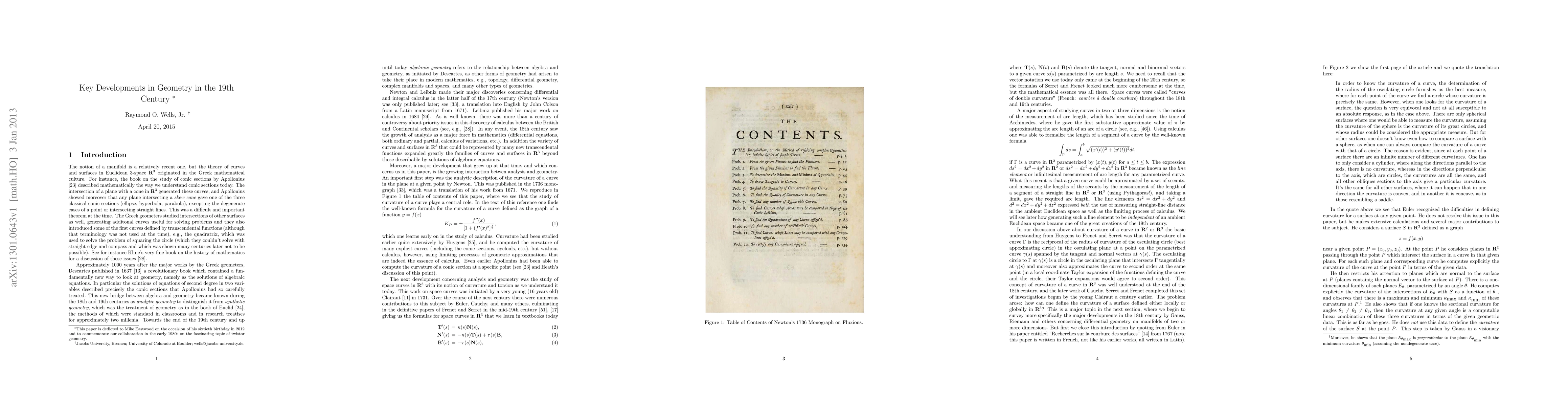Summary: This paper highlights pivotal 19th-century advancements in geometry, including intrinsic differential geometry, projective geometry, and the exploration of higher-dimensional manifolds, which laid the groundwork for the modern theory of manifolds in the 20th century.