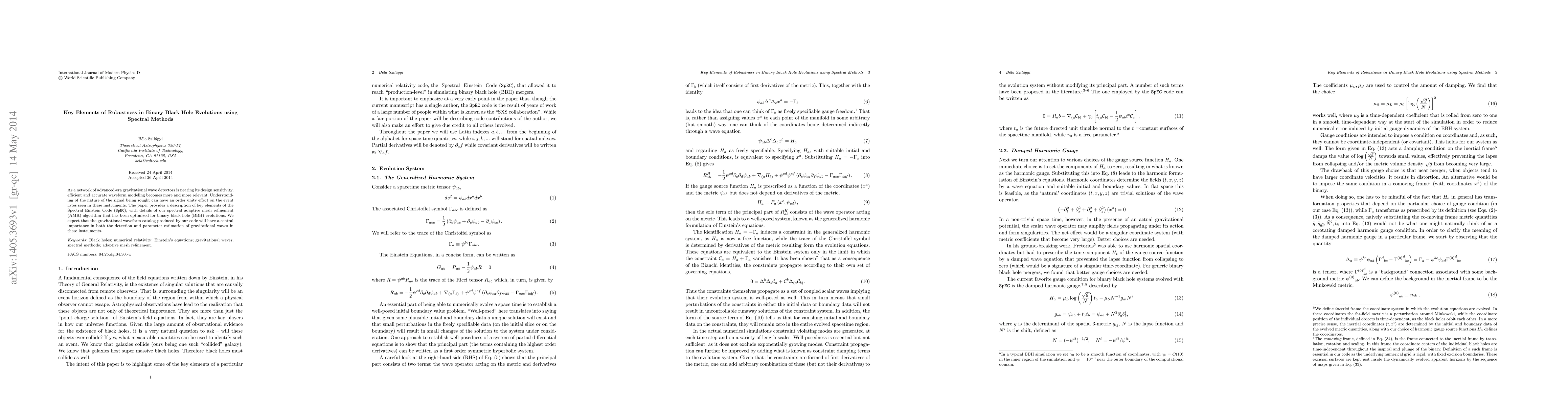 As a network of advanced-era gravitational wave detectors is nearing its design sensitivity, efficient and accurate waveform modeling becomes more and more relevant. Understanding of the nature of the signal being sought can have an order unity effect on the event rates seen in these instruments. The paper provides a description of key elements of the Spectral Einstein Code ({\tt SpEC}), with details of our spectral adaptive mesh refinement (AMR) algorithm that has been optimized for binary black hole (BBH) evolutions. We expect that the gravitational waveform catalog produced by our code will have a central importance in both the detection and parameter estimation of gravitational waves in these instruments.