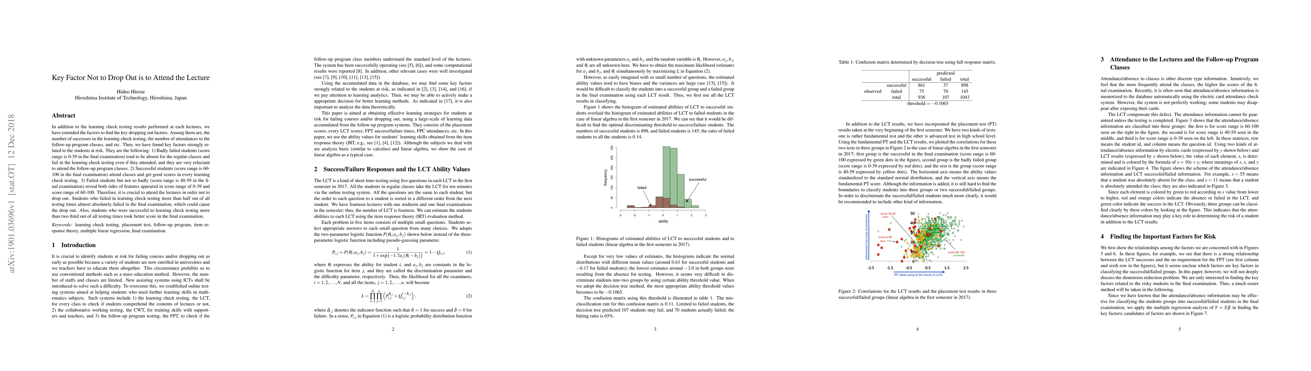 Research finds that attending lectures is crucial for students to avoid dropping out, with badly failed students being most at risk and successful students consistently performing well in exams.
