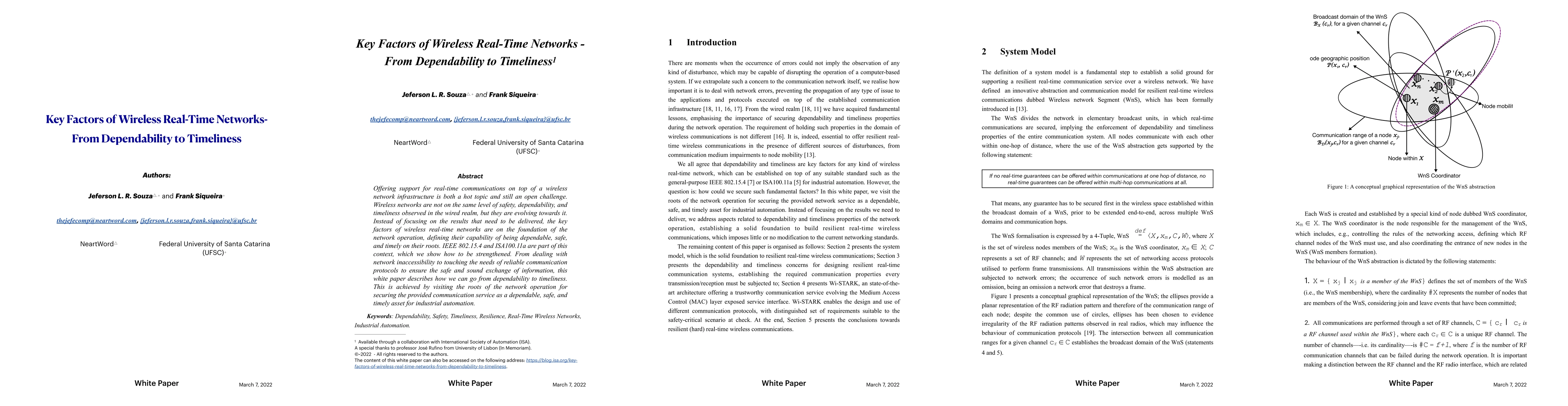 Offering support for real-time communications on top of a wireless network infrastructure is both a hot topic and still an open challenge. Wireless networks are not on the same level of safety, dependability, and timeliness observed in the wired realm, but they are evolving towards it. Instead of focusing on the results that need to be delivered, the key factors of wireless real-time networks are on the foundation of the network operation, defining their capability of being dependable, safe, and timely on their roots. IEEE 802.15.4 and ISA100.11a are part of this context, which we show how to be strengthened. From dealing with network inaccessibility to touching the needs of reliable communication protocols to ensure the safe and sound exchange of information, this white paper describes how we can go from dependability to timeliness. This is achieved by visiting the roots of the network operation for securing the provided communication service as a dependable, safe, and timely asset for industrial automation. Keywords: Dependability, Safety, Timeliness, Resilience, Real-Time Wireless Networks, Industrial Automation.