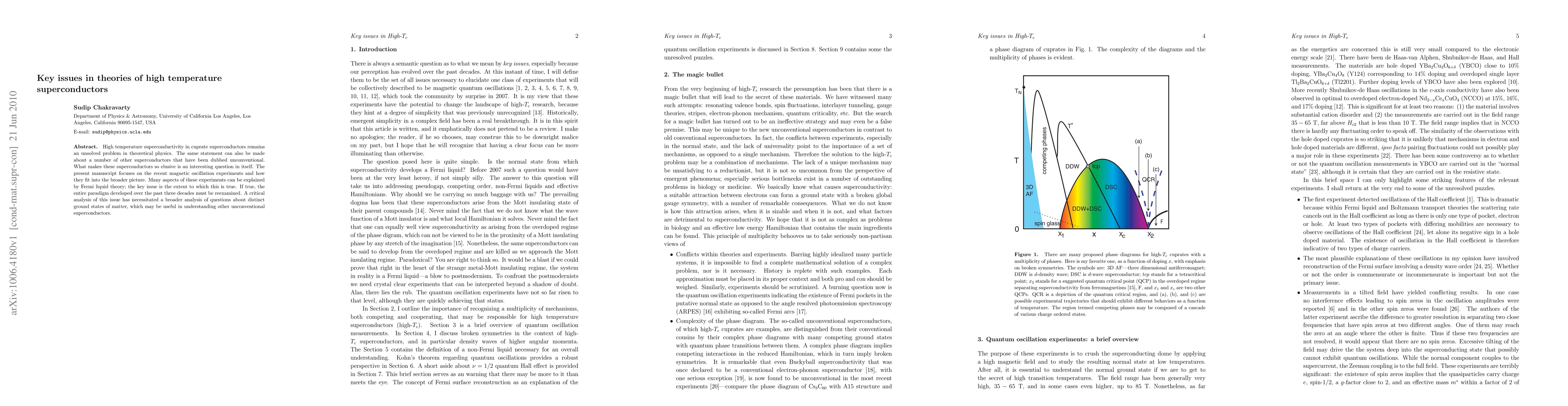 High temperature superconductivity in cuprate superconductors remains an unsolved problem in theoretical physics. The same statement can also be made about a number of other superconductors that have been dubbed unconventional. What makes these superconductors so elusive is an interesting question in itself. The present manuscript focuses on the recent magnetic oscillation experiments and how they fit into the broader picture. Many aspects of these experiments can be explained by Fermi liquid theory; the key issue is the extent to which this is true. If true, the entire paradigm developed over the past three decades must be reexamined. A critical analysis of this issue has necessitated a broader analysis of questions about distinct ground states of matter, which may be useful in understanding other unconventional superconductors.