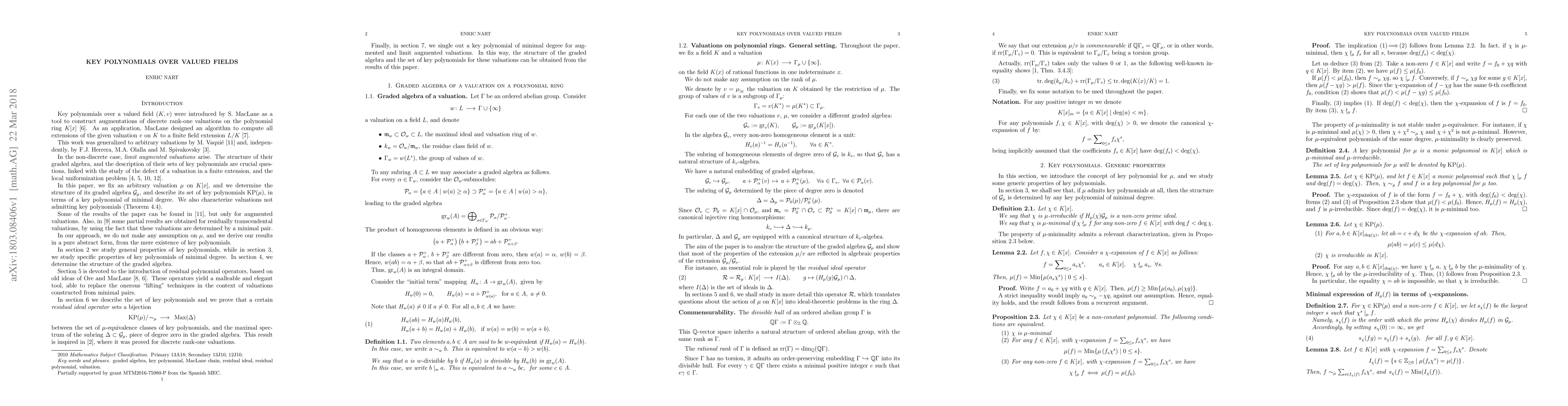 Let K be a field. For a given valuation on K[x], we determine the structure of its graded algebra and describe its set of key polynomials, in terms of any given key polynomial of minimal degree. We also characterize valuations not admitting key polynomials.