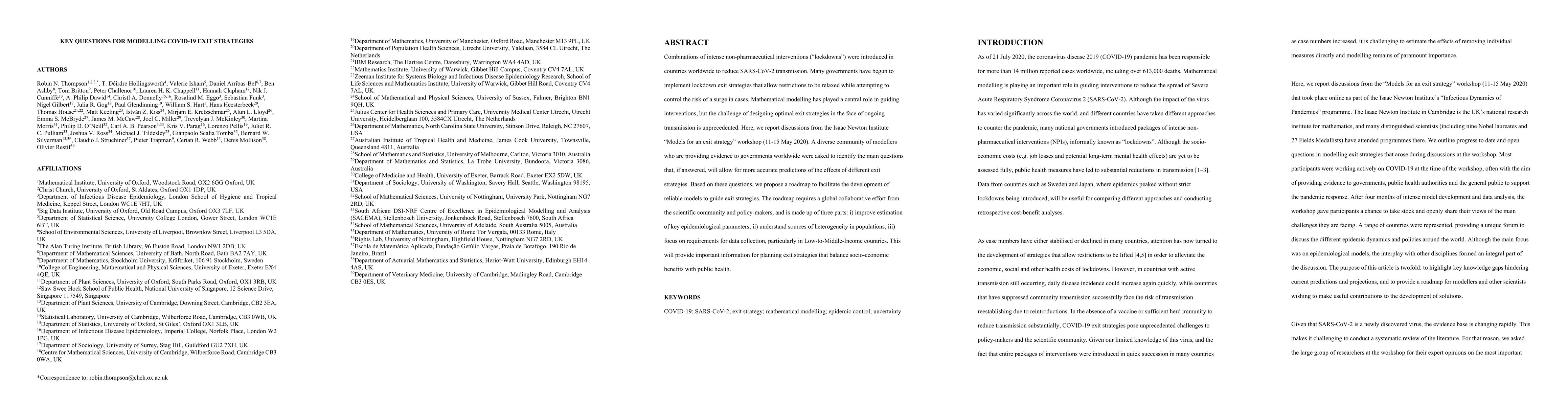 Combinations of intense non-pharmaceutical interventions ('lockdowns') were introduced in countries worldwide to reduce SARS-CoV-2 transmission. Many governments have begun to implement lockdown exit strategies that allow restrictions to be relaxed while attempting to control the risk of a surge in cases. Mathematical modelling has played a central role in guiding interventions, but the challenge of designing optimal exit strategies in the face of ongoing transmission is unprecedented. Here, we report discussions from the Isaac Newton Institute 'Models for an exit strategy' workshop (11-15 May 2020). A diverse community of modellers who are providing evidence to governments worldwide were asked to identify the main questions that, if answered, will allow for more accurate predictions of the effects of different exit strategies. Based on these questions, we propose a roadmap to facilitate the development of reliable models to guide exit strategies. The roadmap requires a global collaborative effort from the scientific community and policy-makers, and is made up of three parts: i) improve estimation of key epidemiological parameters; ii) understand sources of heterogeneity in populations; iii) focus on requirements for data collection, particularly in Low-to-Middle-Income countries. This will provide important information for planning exit strategies that balance socio-economic benefits with public health.