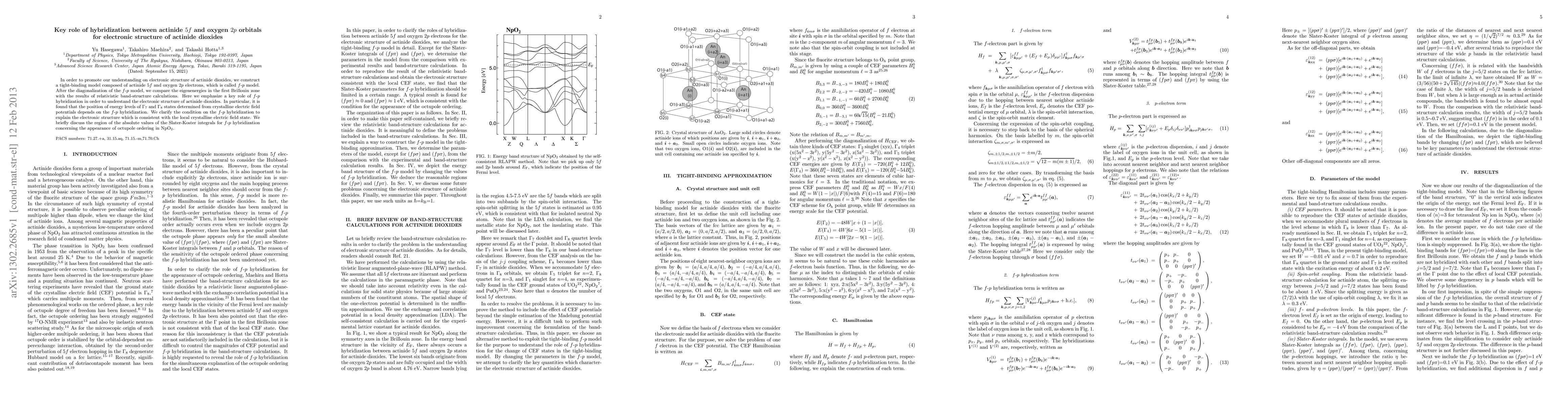 This research constructs an f-p model to understand actinide dioxides' electronic structure, emphasizing the crucial role of hybridization between actinide 5f and oxygen 2p orbitals. The study reveals that this hybridization influences the energy levels of Γ7 and Γ8 states, clarifying conditions for local crystalline electric field states and discussing octupole ordering in NpO2.