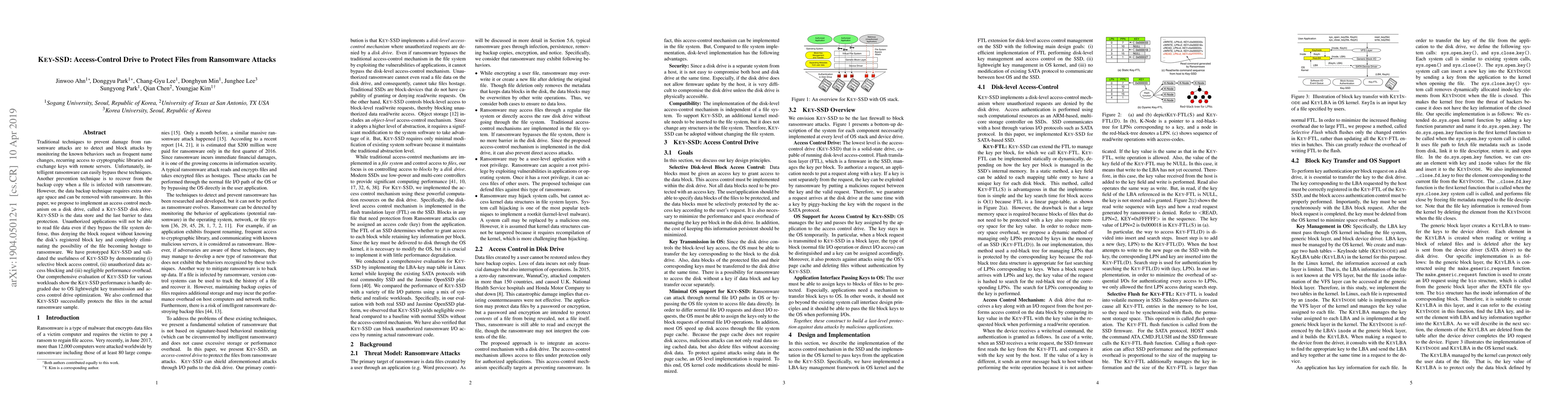 Researchers propose KEY-SSD, an access-control drive that protects files from ransomware attacks by requiring authorized applications to know the disk's registered block key, effectively blocking unauthorized data access.