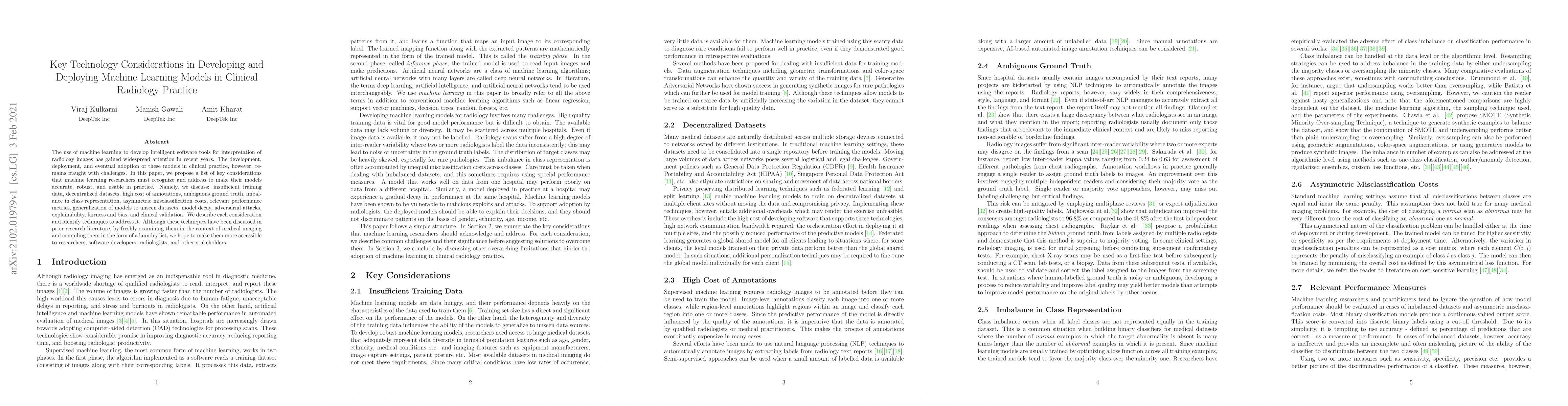 This paper outlines critical considerations for developing and deploying machine learning models in clinical radiology, including data challenges, model robustness, and ethical issues. It emphasizes techniques to address these challenges to ensure models are accurate, generalizable, and usable in clinical settings.