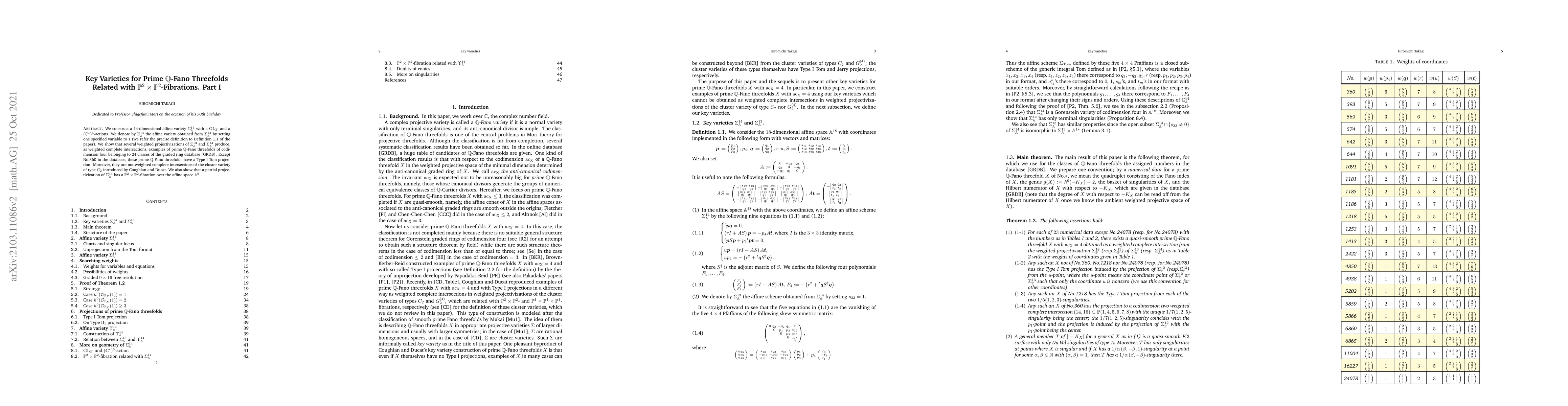 This paper constructs a $14$-dimensional affine variety $\Sigma^{14}_{\mathbb{A}}$ with specified actions, showing that its weighted projectivizations yield prime $\mathbb{Q}$-Fano threefolds of codimension four, except for one class, all of which have a Type I Tom projection. Additionally, it reveals a $\mathbb{P}^2\times \mathbb{P}^2$-fibration over $\mathbb{A}^9$ in a partial projectivization.