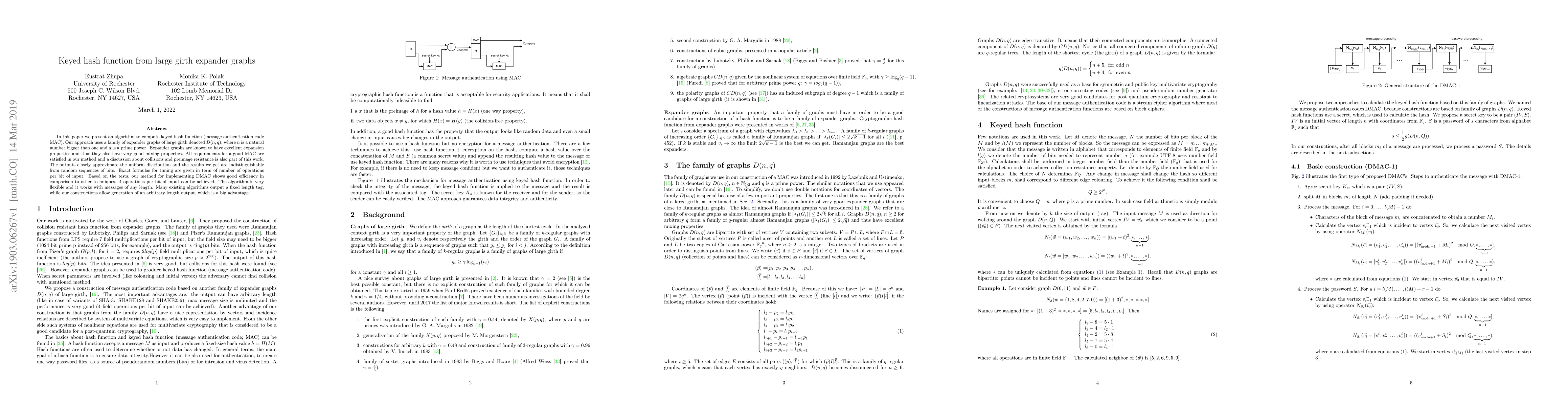 This work is different from existing research in its use of expander graphs to compute keyed hash functions, offering improved security and efficiency.