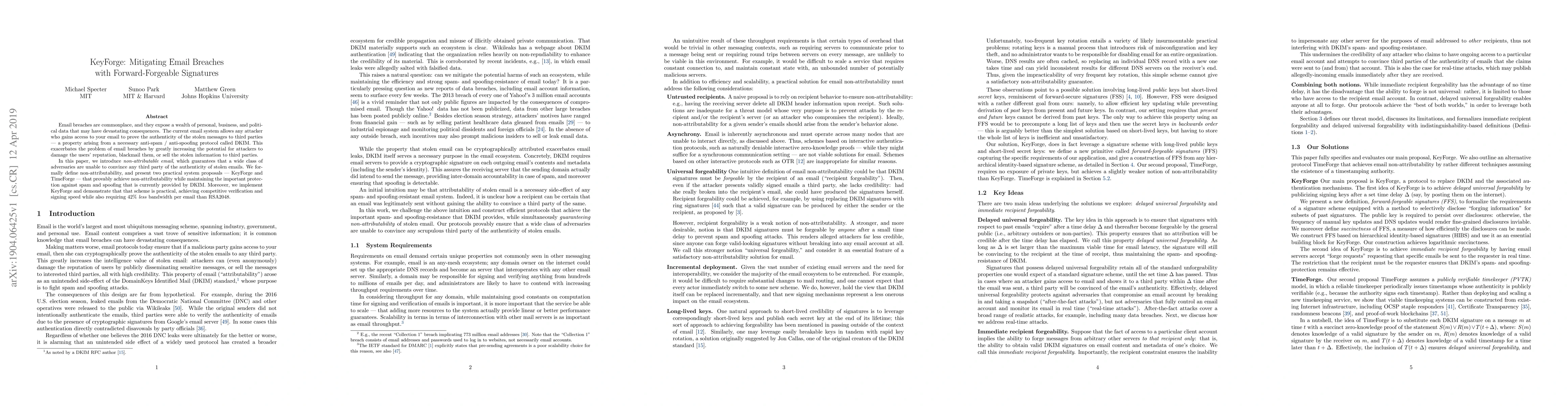 This research introduces new cryptographic signatures that prevent attackers from proving stolen emails are genuine, enhancing privacy and security beyond current email systems. The proposed methods are practical, efficient, and maintain spam protection while reducing bandwidth needs.
