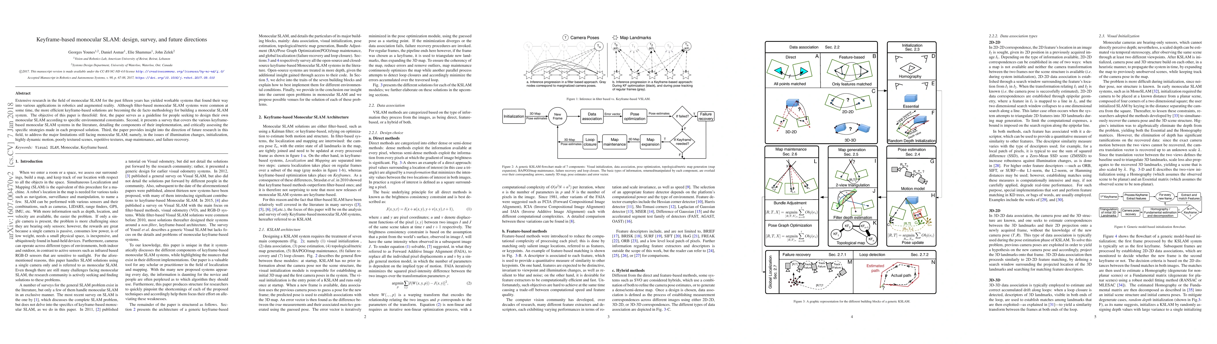 This paper provides a comprehensive guide for designing keyframe-based monocular SLAM systems, surveys existing literature, and identifies key challenges and future research directions, including issues like illumination changes and dynamic motion.
