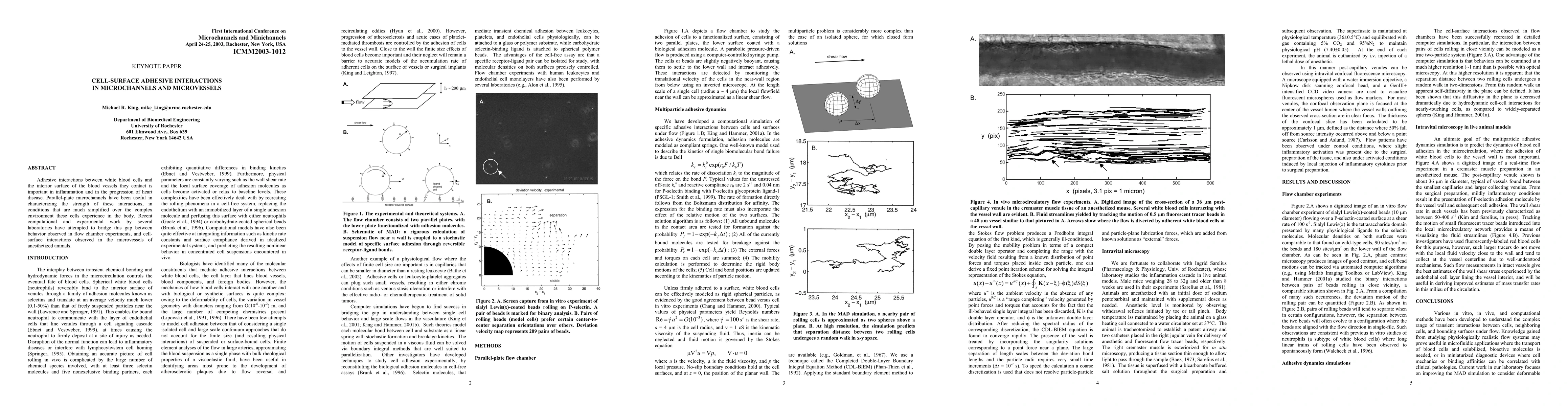 Adhesive interactions between white blood cells and the interior surface of the blood vessels they contact is important in inflammation and in the progression of heart disease. Parallel-plate microchannels have been useful in characterizing the strength of these interactions, in conditions that are much simplified over the complex environment these cells experience in the body. Recent computational and experimental work by several laboratories have attempted to bridge this gap between behavior observed in flow chamber experiments, and cell-surface interactions observed in the microvessels of anesthetized animals.
