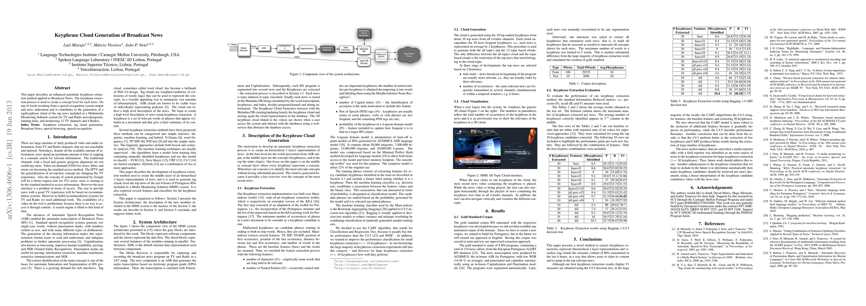 This paper describes an enhanced automatic keyphrase extraction method applied to Broadcast News. The keyphrase extraction process is used to create a concept level for each news. On top of words resulting from a speech recognition system output and news indexation and it contributes to the generation of a tag/keyphrase cloud of the top news included in a Multimedia Monitoring Solution system for TV and Radio news/programs, running daily, and monitoring 12 TV channels and 4 Radios.