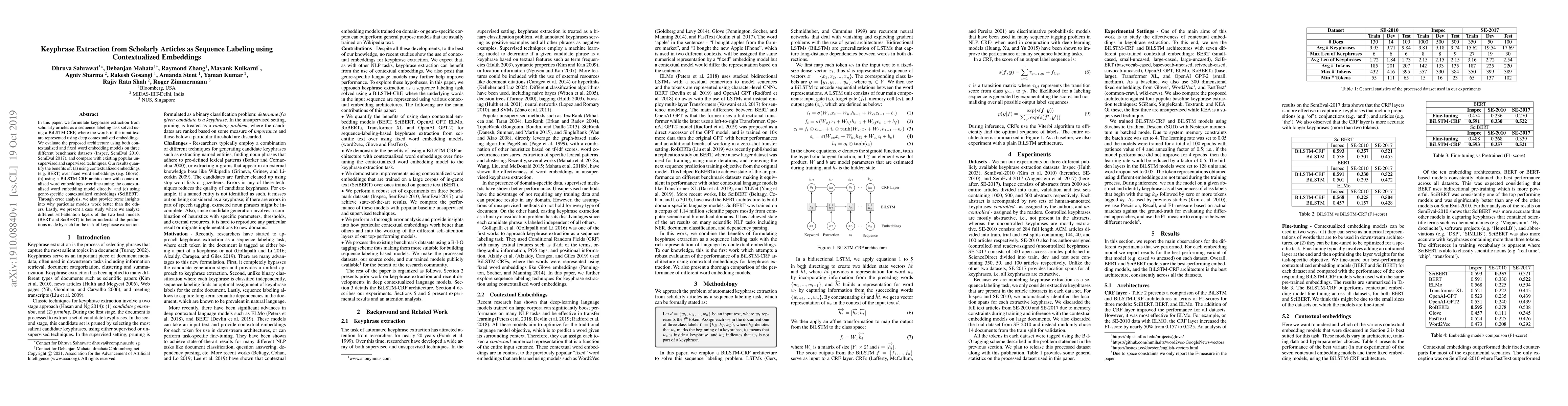 This paper proposes a BiLSTM-CRF sequence labeling model for keyphrase extraction from scholarly articles, employing deep contextualized embeddings like BERT and SciBERT. It demonstrates the advantages of contextualized embeddings over fixed embeddings and genre-specific embeddings, alongside insights gained from error analysis and a case study on self-attention layers.