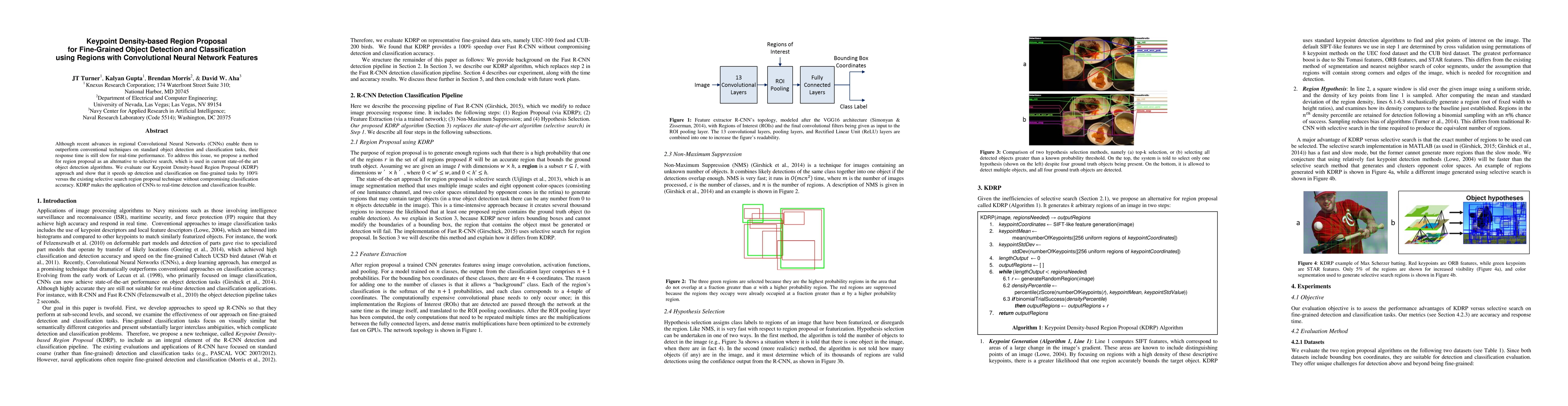 This paper proposes a Keypoint Density-based Region Proposal (KDRP) method to accelerate fine-grained object detection and classification using CNNs. KDRP significantly speeds up region proposal compared to selective search, achieving a 100% improvement in response time without sacrificing accuracy.