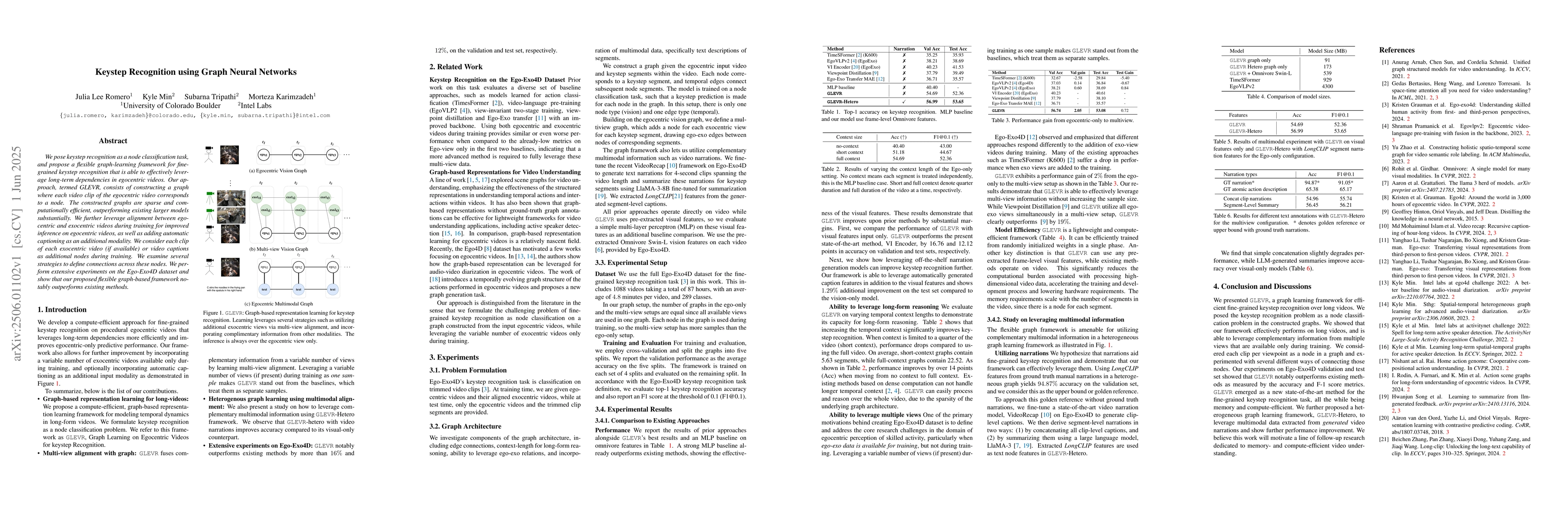 Researchers developed a graph neural network framework to recognize keysteps in egocentric videos, achieving better performance than existing methods with reduced computational complexity. Their approach leverages alignment between egocentric and exocentric videos for improved inference.