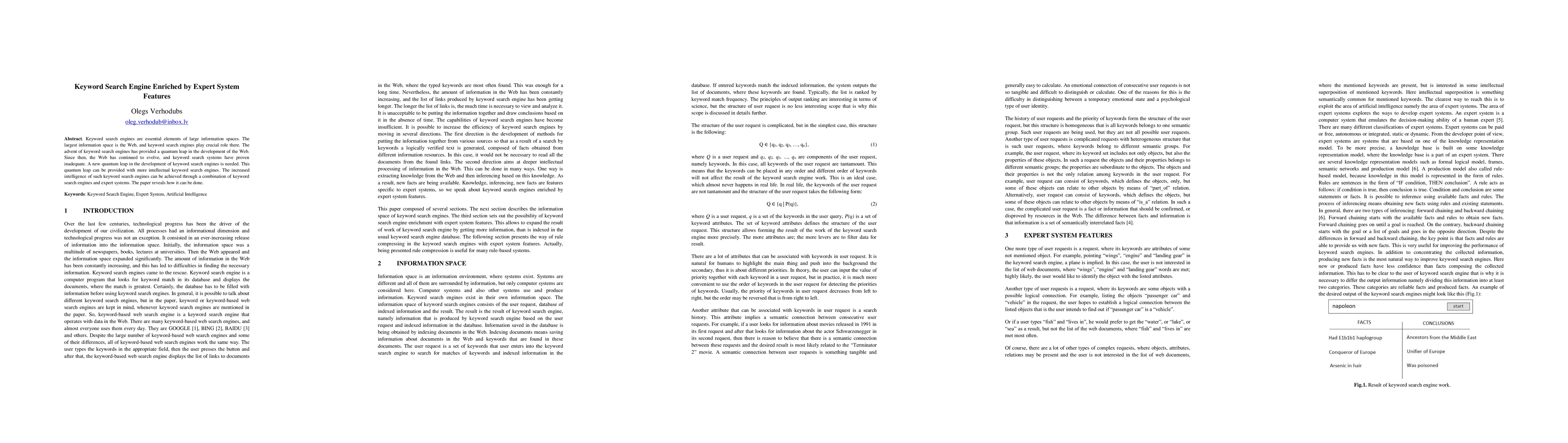 Keyword search engines are essential elements of large information spaces. The largest information space is the Web, and keyword search engines play crucial role there. The advent of keyword search engines has provided a quantum leap in the development of the Web. Since then, the Web has continued to evolve, and keyword search systems have proven inadequate. A new quantum leap in the development of keyword search engines is needed. This quantum leap can be provided with more intellectual keyword search engines. The increased intelligence of such keyword search engines can be achieved through a combination of keyword search engines and expert systems. The paper reveals how it can be done.