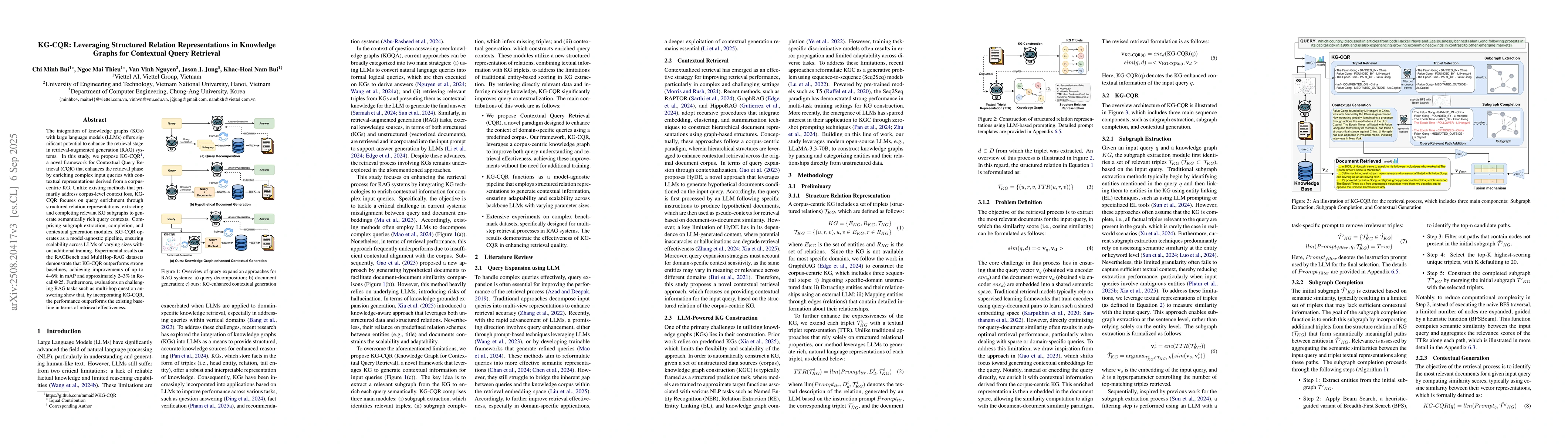 The integration of knowledge graphs (KGs) with large language models (LLMs) offers significant potential to improve the retrieval phase of retrieval-augmented generation (RAG) systems. In this study, we propose KG-CQR, a novel framework for Contextual Query Retrieval (CQR) that enhances the retrieval phase by enriching the contextual representation of complex input queries using a corpus-centric KG. Unlike existing methods that primarily address corpus-level context loss, KG-CQR focuses on query enrichment through structured relation representations, extracting and completing relevant KG subgraphs to generate semantically rich query contexts. Comprising subgraph extraction, completion, and contextual generation modules, KG-CQR operates as a model-agnostic pipeline, ensuring scalability across LLMs of varying sizes without additional training. Experimental results on RAGBench and MultiHop-RAG datasets demonstrate KG-CQR's superior performance, achieving a 4-6% improvement in mAP and a 2-3% improvement in Recall@25 over strong baseline models. Furthermore, evaluations on challenging RAG tasks such as multi-hop question answering show that, by incorporating KG-CQR, the performance consistently outperforms the existing baseline in terms of retrieval effectiveness