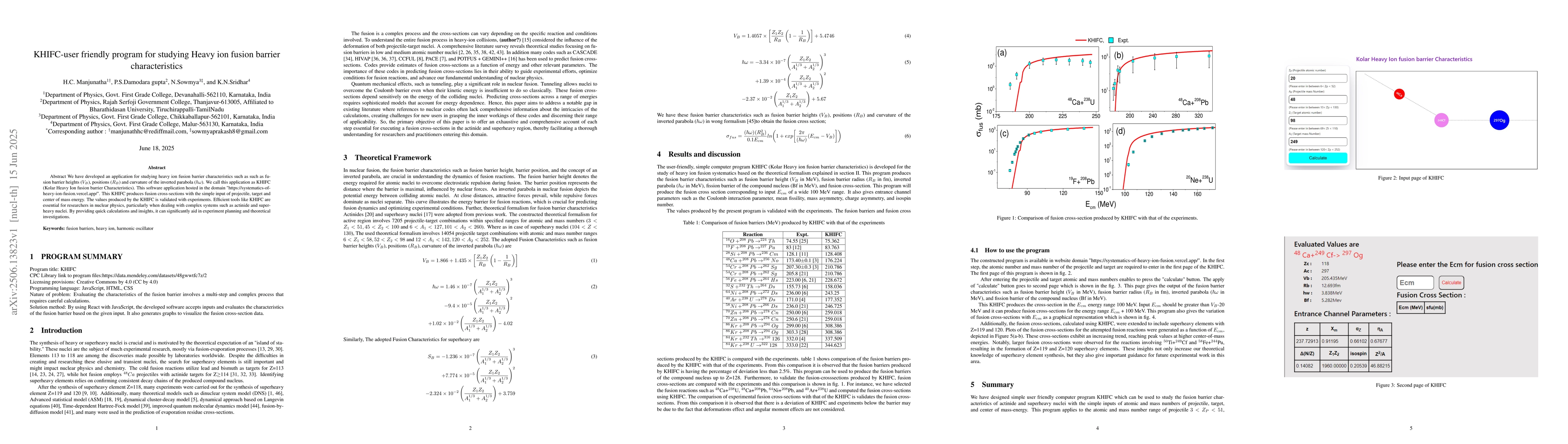 We have developed an application for studying heavy ion fusion barrier characteristics such as such as fusion barrier heights ($V_B$), positions ($R_B$) and curvature of the inverted parabola ($\hbar\omega$). We call this application as KHIFC (Kolar Heavy Ion fusion barrier Characteristics). This software application hosted in the domain "https://systematics-of-heavy-ion-fusion.vercel.app/". This KHIFC produces fusion cross-sections with the simple input of projectile, target and center of mass energy. The values produced by the KHIFC is validated with experiments. Efficient tools like KHIFC are essential for researchers in nuclear physics, particularly when dealing with complex systems such as actinide and superheavy nuclei. By providing quick calculations and insights, it can significantly aid in experiment planning and theoretical investigations.
