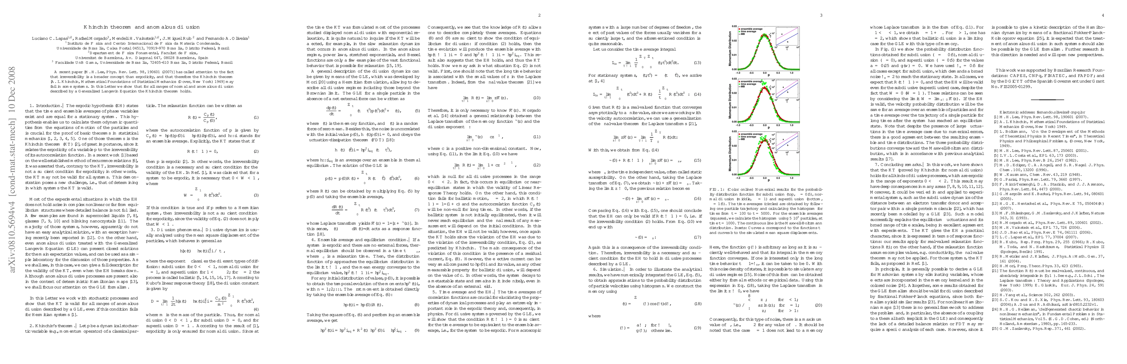 This paper demonstrates that the Khinchin theorem, which traditionally applies to ergodic systems, remains valid for both normal and anomalous diffusion processes described by a Generalized Langevin Equation, challenging the notion that irreversibility implies the theorem's failure in some systems.