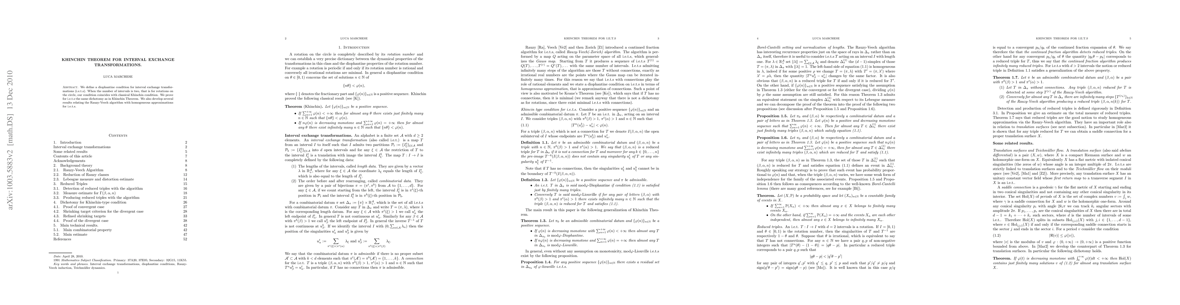 The paper introduces a refined diophantine condition for interval exchange transformations and demonstrates its equivalence with the Khinchin condition in the special case of rotations on a circle, thereby extending Khinchin's theorem to interval exchange transformations.