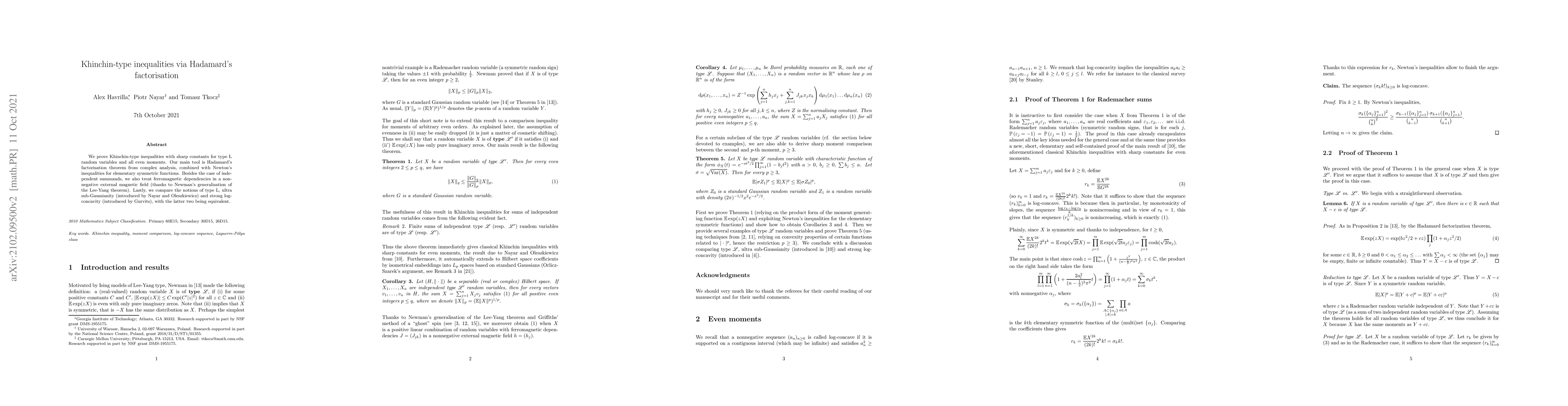 This paper proves Khinchin-type inequalities with sharp constants for type L random variables using Hadamard's factorisation theorem and Newton's inequalities, addressing both independent and ferromagnetic dependencies. It also compares type L with ultra sub-Gaussianity and strong log-concavity.