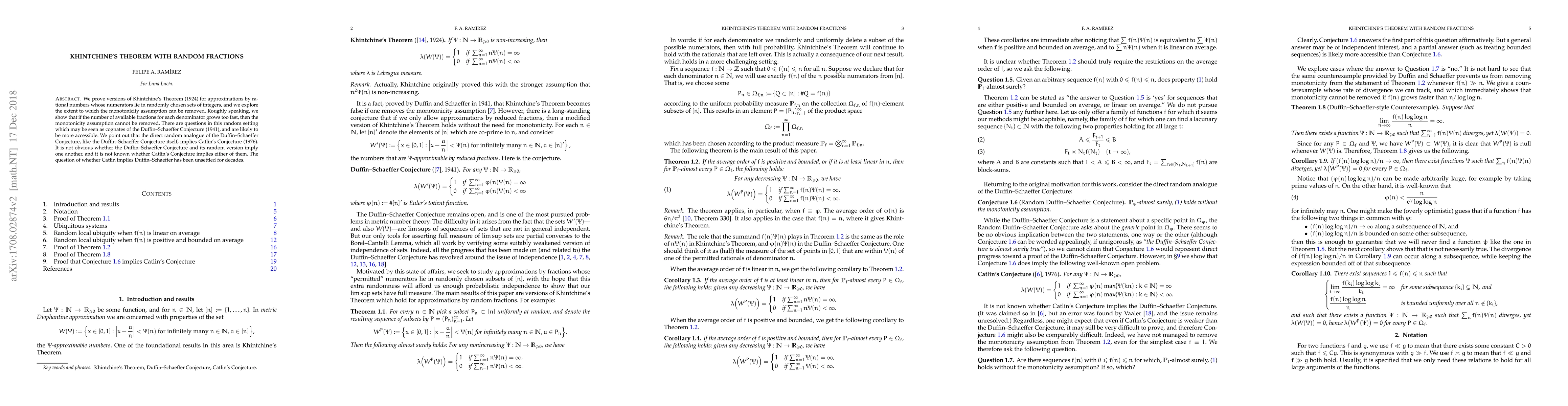 Researchers prove versions of Khintchine's Theorem for approximations by rational numbers with randomly chosen numerators, exploring the impact of increasing denominator options on monotonicity assumptions.