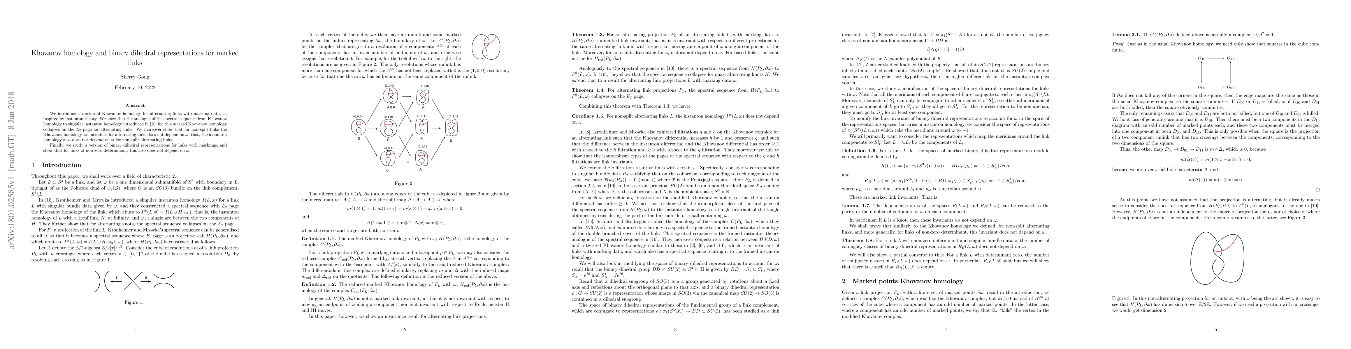 This paper introduces a marked Khovanov homology for alternating links, demonstrating its equivalence to singular instanton homology and showing independence from marking data for non-split links. It also examines binary dihedral representations for marked links, revealing similar independence for non-zero determinant links.