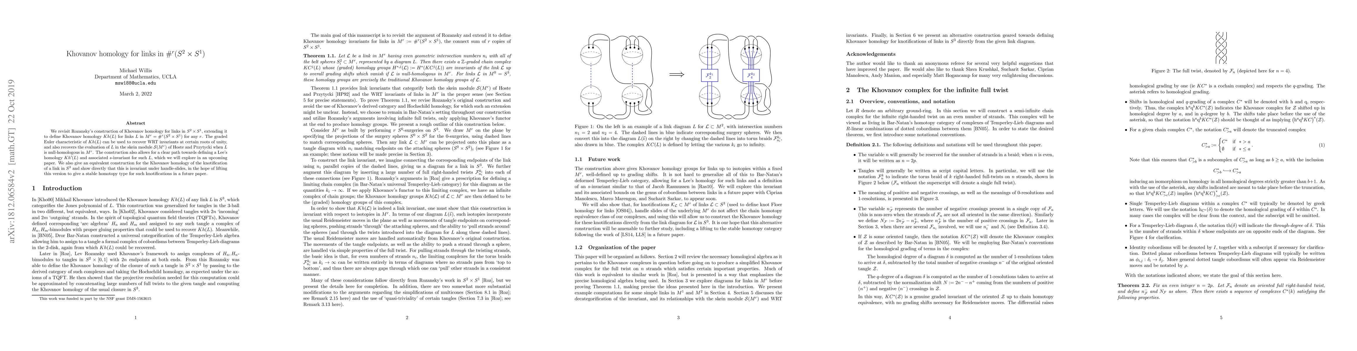 This paper extends Rozansky's Khovanov homology construction to links in $M^r=#^r(S^2\times S^1)$, showing its graded Euler characteristic recovers WRT invariants and skein module evaluations. Future work aims to define Lee's homology and explore stable homotopy types for knotifications.