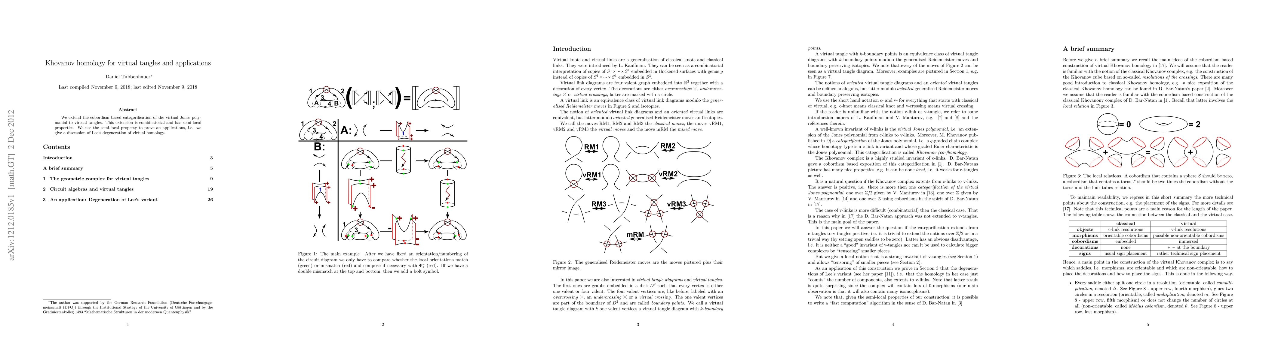 Summary: The paper extends the cobordism-based categorification of the virtual Jones polynomial to virtual tangles, leveraging combinatorial methods and semi-local properties, and applies this to discuss Lee's degeneration of virtual homology.