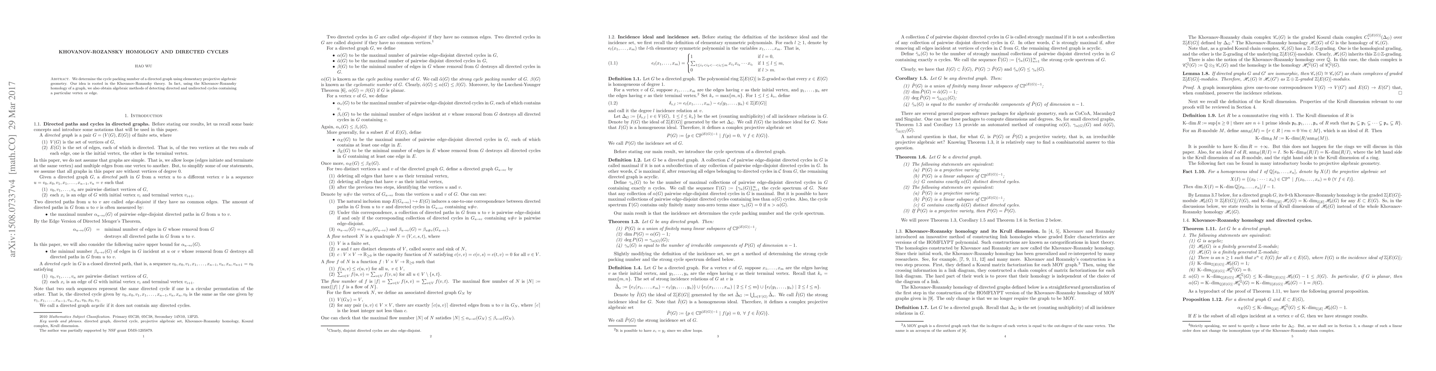 We determine the cycle packing number of a directed graph using elementary projective algebraic geometry. Our idea is rooted in the Khovanov-Rozansky theory. In fact, using the Khovanov-Rozansky homology of a graph, we also obtain algebraic methods of detecting directed and undirected cycles containing a particular vertex or edge.