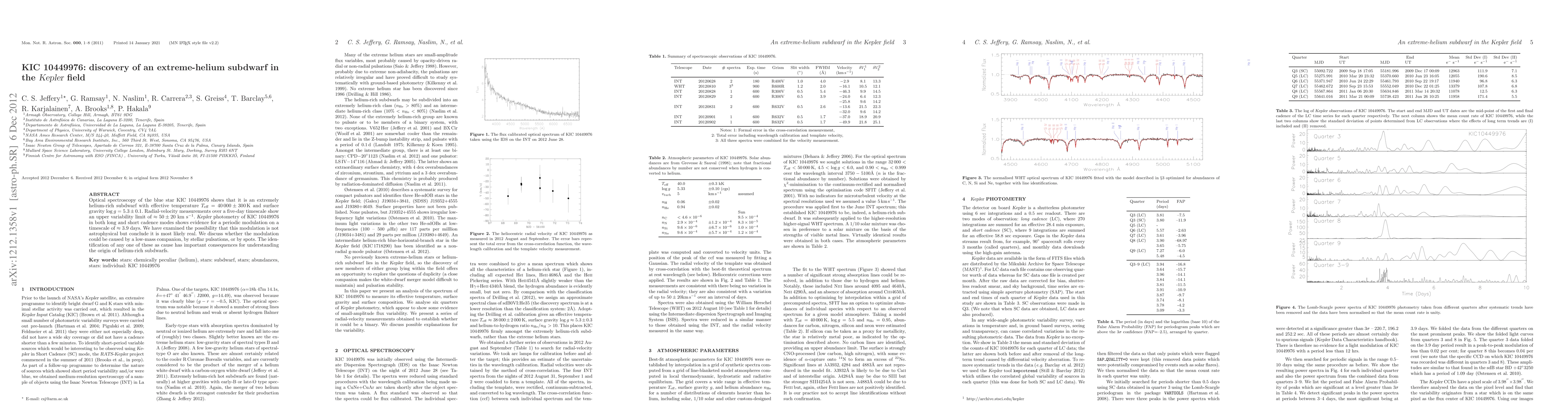 Optical spectroscopy of the blue star KIC 10449976 shows that it is an extremely helium-rich subdwarf with effective temperature T=40000+/-300 K and surface gravity log g=5.3+/-0.1. Radial-velocity measurements over a five-day timescale show an upper variability limit of ~50+/-20 km/s. Kepler photometry of KIC 10449976 in both long and short cadence modes shows evidence for a periodic modulation on a timescale of ~3.9 days. We have examined the possibility that this modulation is not astrophysical but conclude it is most likely real. We discuss whether the modulation could be caused by a low-mass companion, by stellar pulsations, or by spots. The identification of any one of these as cause has important consequences for understanding the origin of helium-rich subdwarfs.