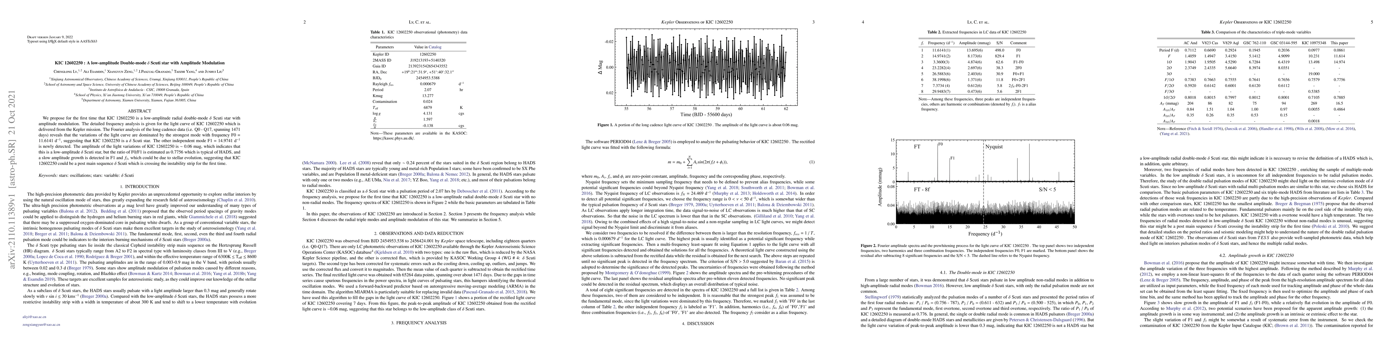This paper identifies KIC 12602250 as a low-amplitude double-mode $\delta$ Scuti star with amplitude modulation, based on Kepler mission data. The star exhibits two dominant pulsation modes, with frequencies F0 and F1, suggesting it may be a post main sequence star crossing the instability strip for the first time.
