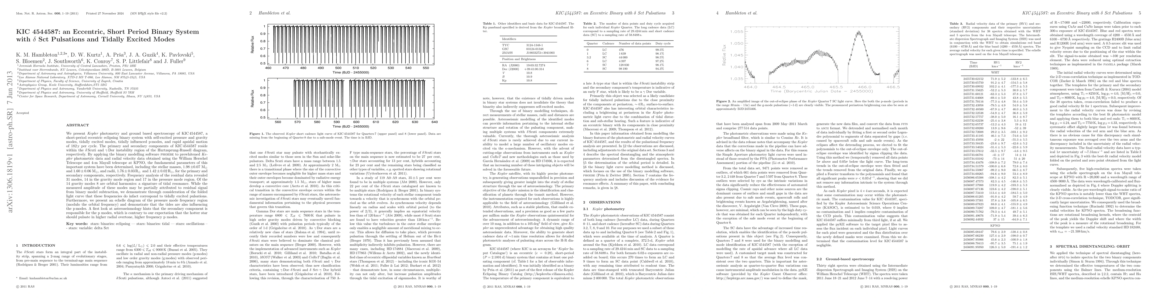KIC 4544587 is a short-period eccentric binary system exhibiting delta Scuti pulsations and tidally excited modes, with detailed modeling revealing stellar masses and radii. The secondary component surprisingly drives the pressure modes, contrary to expectations.
