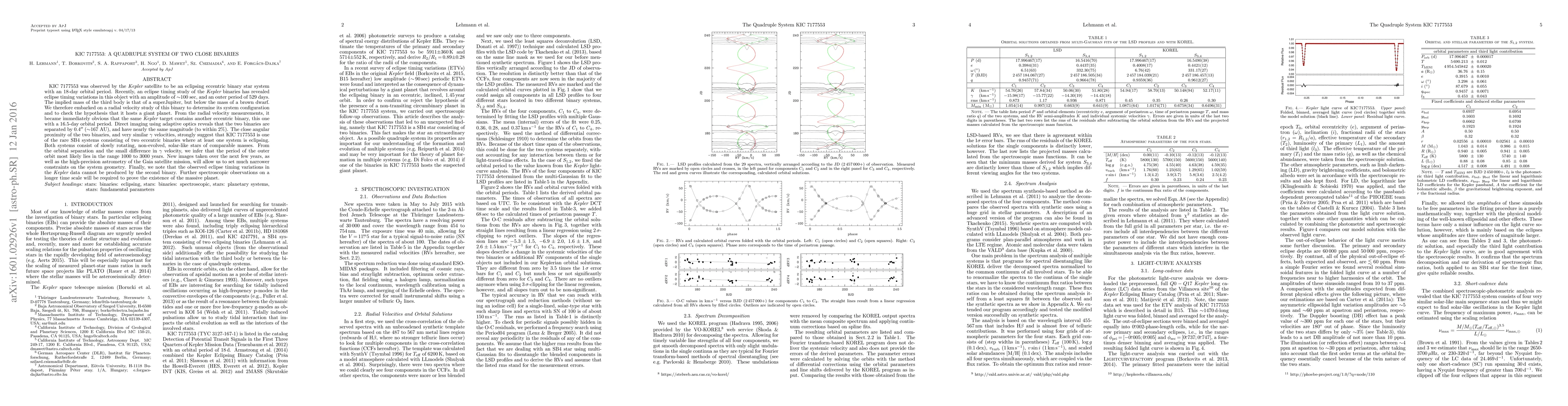 KIC 7177553 was observed by the Kepler satellite to be an eclipsing eccentric binary star system with an 18-day orbital period. Recently, an eclipse timing study of the Kepler binaries has revealed eclipse timing variations in this object with an amplitude of about 100 sec, and an outer period of 529 days. The implied mass of the third body is that of a superJupiter, but below the mass of a brown dwarf. We therefore embarked on a radial velocity study of this binary to determine its system configuration and to check the hypothesis that it hosts a giant planet. From the radial velocity measurements, it became immediately obvious that the same Kepler target contains another eccentric binary, this one with a 16.5-day orbital period. Direct imaging using adaptive optics reveals that the two binaries are separated by 0.4 arcsec (about 167 AU), and have nearly the same magnitude (to within 2%). The close angular proximity of the two binaries, and very similar Gamma velocities, strongly suggest that KIC 7177553 is one of the rare SB4 systems consisting of two eccentric binaries where at least one system is eclipsing. Both systems consist of slowly rotating, non-evolved, solar-like stars of comparable masses. From the orbital separation and the small difference in Gamma velocity, we infer that the period of the outer orbit most likely lies in the range 1000 to 3000 years. New images taken over the next few years, as well as the high-precision astrometry of the Gaia satellite mission, will allow us to set much narrower constraints on the system geometry. Finally, we note that the observed eclipse timing variations in the Kepler data cannot be produced by the second binary. Further spectroscopic observations on a longer time scale will be required to prove the existence of the massive planet.