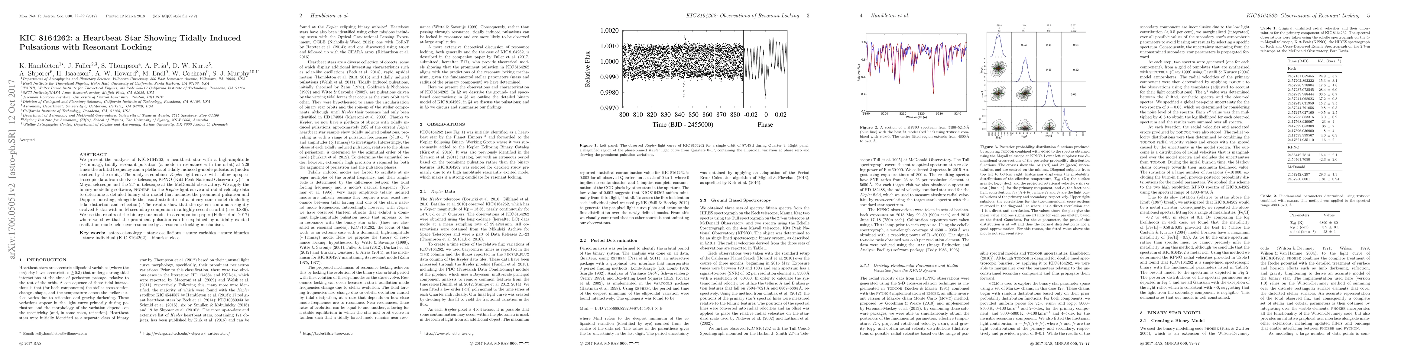 KIC 8164262 is a heartbeat star exhibiting high-amplitude tidally induced pulsations, including resonant locking at 229 times the orbital frequency, analyzed using Kepler light curves and spectroscopic data. The system features a slightly evolved F star with an M companion in a highly eccentric orbit, where pulsations are explained by tidally excited oscillations.