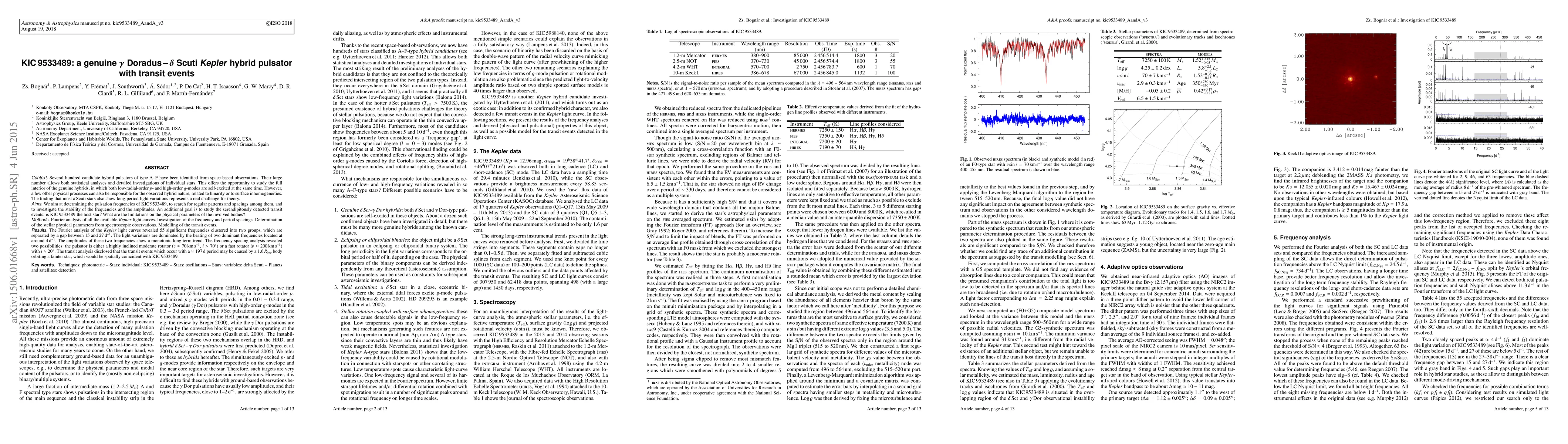 The research identifies KIC 9533489 as a genuine hybrid pulsator exhibiting both gamma Doradus and delta Scuti pulsations, confirmed through Fourier analysis of Kepler light curves. The transit events observed suggest a potential companion star causing periodic dimming.