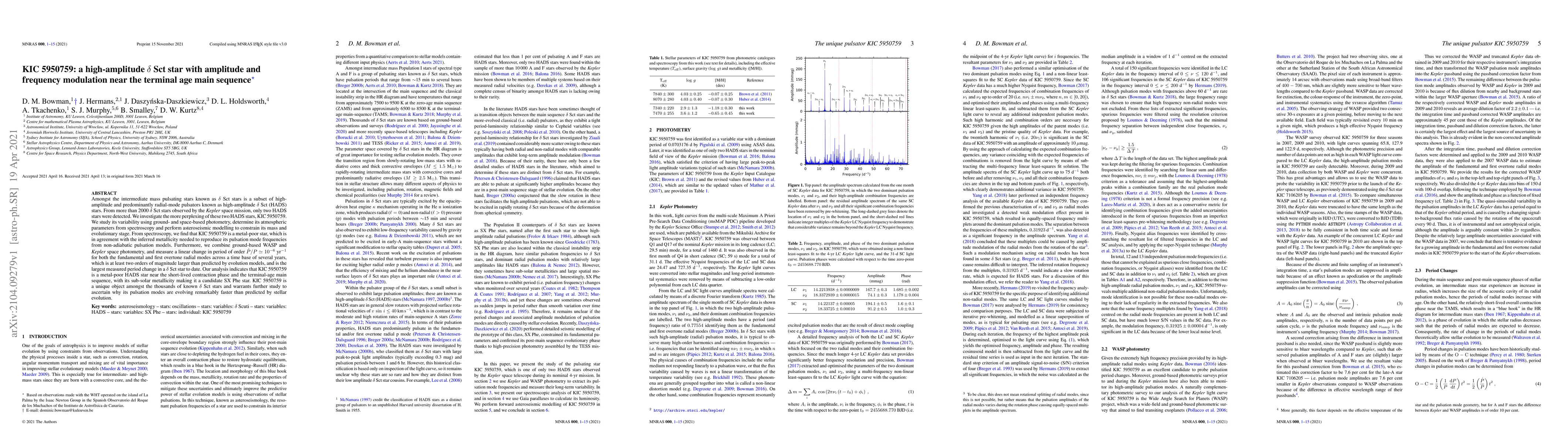 KIC5950759 is a high-amplitude $\delta$ Sct star exhibiting unusual rapid period modulation, suggesting it is near the terminal age main sequence. Its metal-poor nature and significant period change challenge current stellar evolution models.