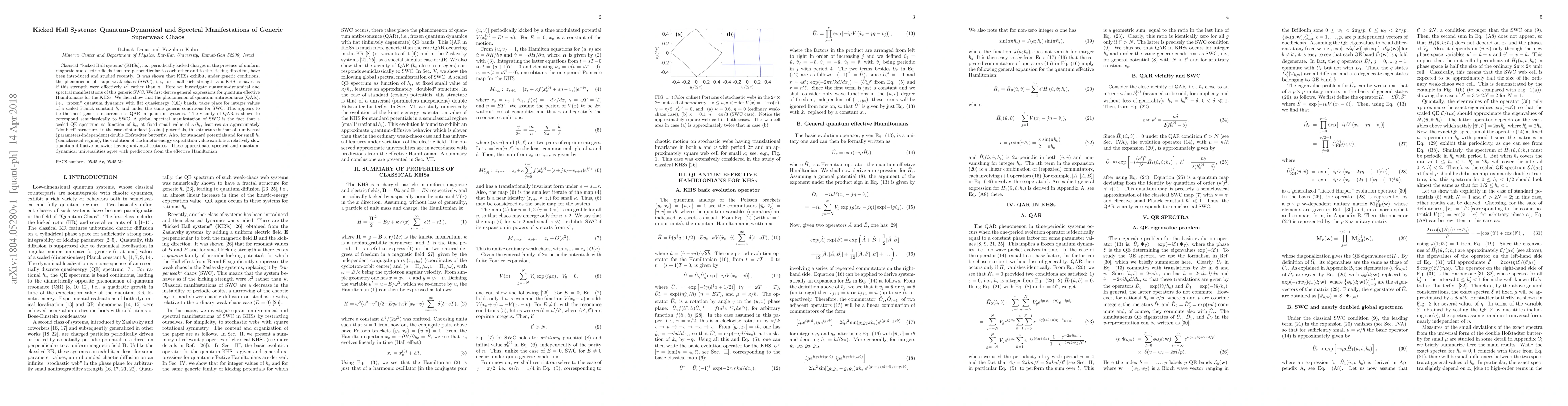 A recent study investigates quantum-dynamical and spectral manifestations of superweak chaos in kicked Hall systems, revealing generic quantum antiresonance and universal spectral features.