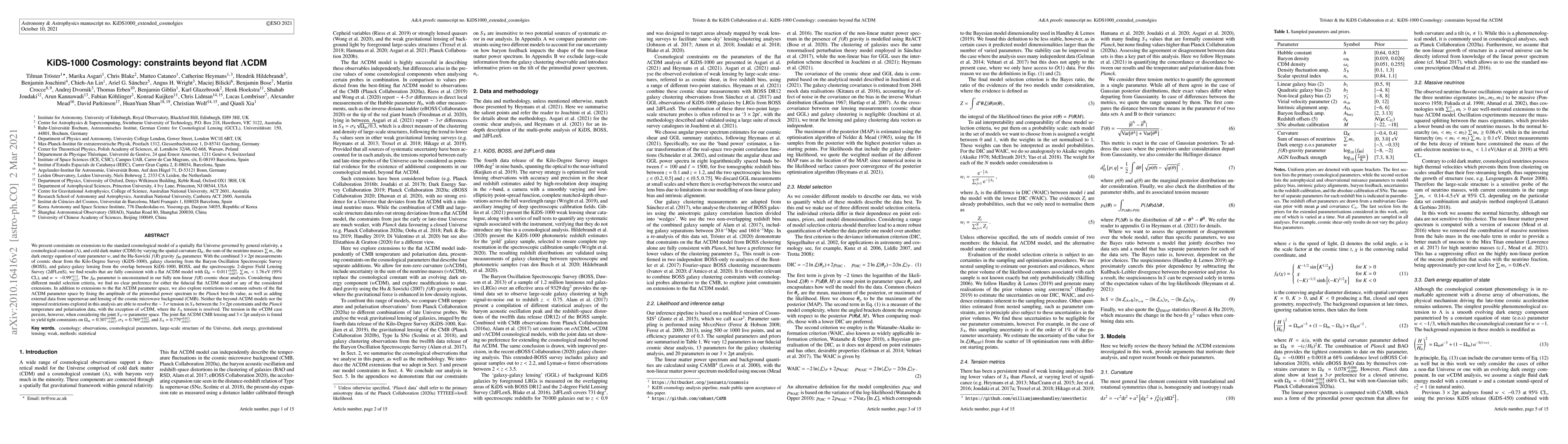 This paper explores extensions to the flat $\Lambda$CDM model using KiDS-1000 cosmic shear, BOSS galaxy clustering, and 2dFLenS galaxy-galaxy lensing data. It finds no significant preference for these extensions over the standard model, with no resolution to the $S_8$ tension, except in the $w$CDM model where the tension persists in the joint $S_8$-$w$ parameter space.