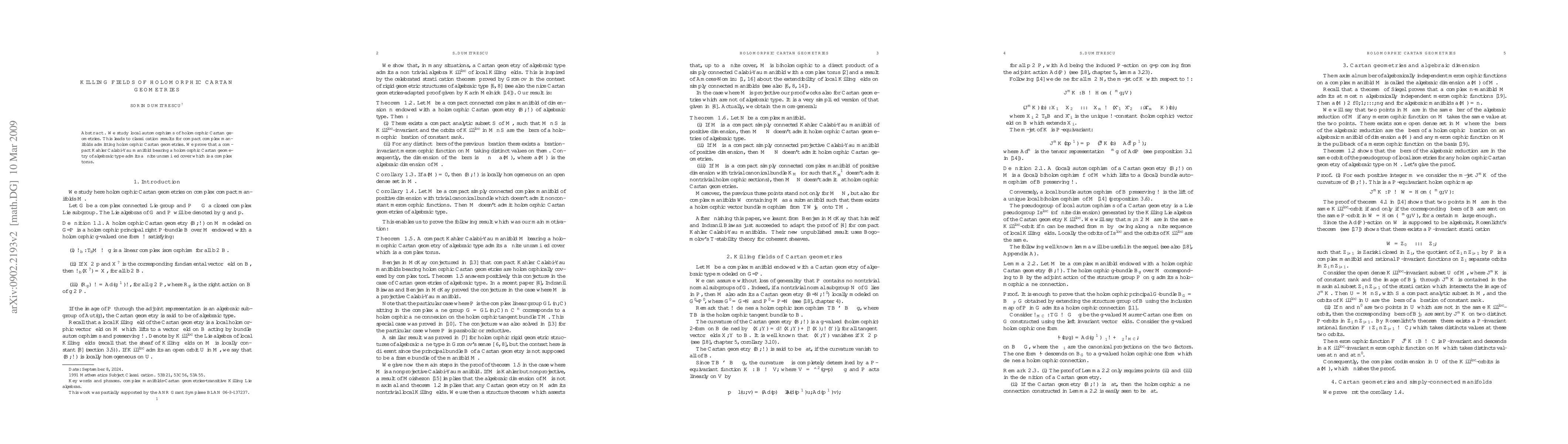 This paper classifies compact complex manifolds with holomorphic Cartan geometries and shows that a compact Calabi-Yau manifold with a holomorphic Cartan geometry of algebraic type has a finite unramified cover that is a complex torus. The study focuses on local automorphisms of these geometries.