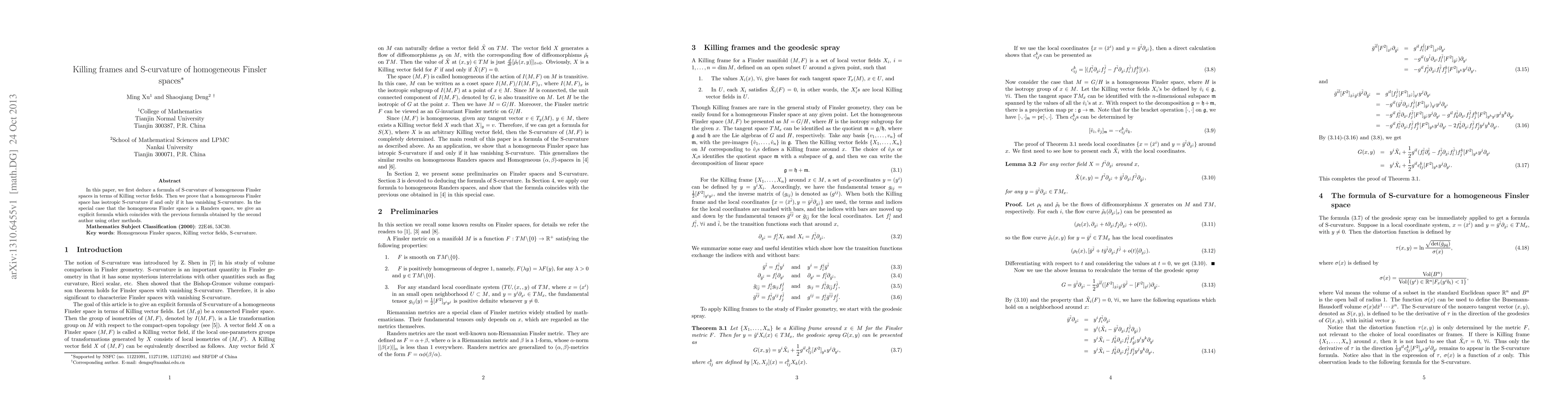 This paper derives a formula for S-curvature in homogeneous Finsler spaces using Killing vector fields and proves that such spaces have isotropic S-curvature if and only if their S-curvature vanishes, with a special case for Randers spaces providing an explicit formula.