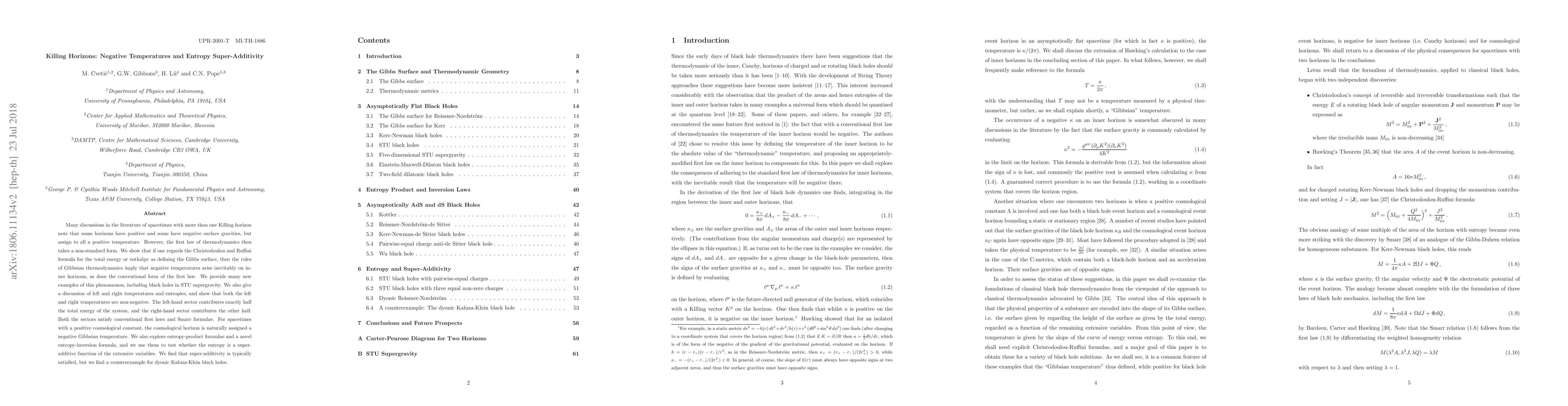 This paper explores the thermodynamic implications of spacetimes with multiple Killing horizons, demonstrating that negative temperatures arise on inner horizons, leading to a non-standard first law of thermodynamics. It also investigates entropy-super-additivity and finds that it generally holds, except for dyonic Kaluza-Klein black holes.
