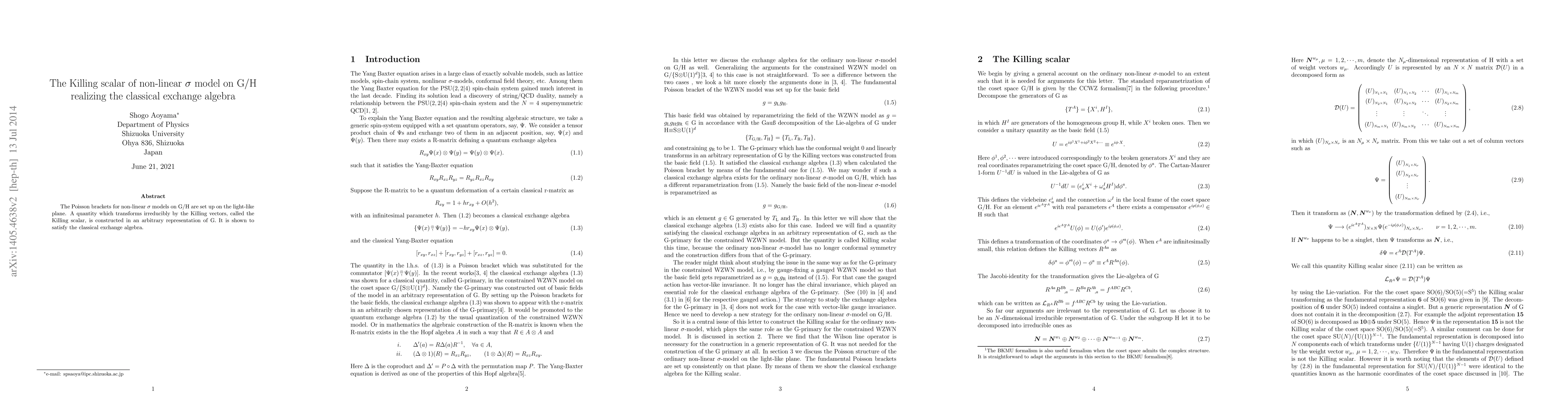 Researchers develop a mathematical framework to study non-linear sigma models on Lie groups, introducing a new concept called the Killing scalar that satisfies the classical exchange algebra.