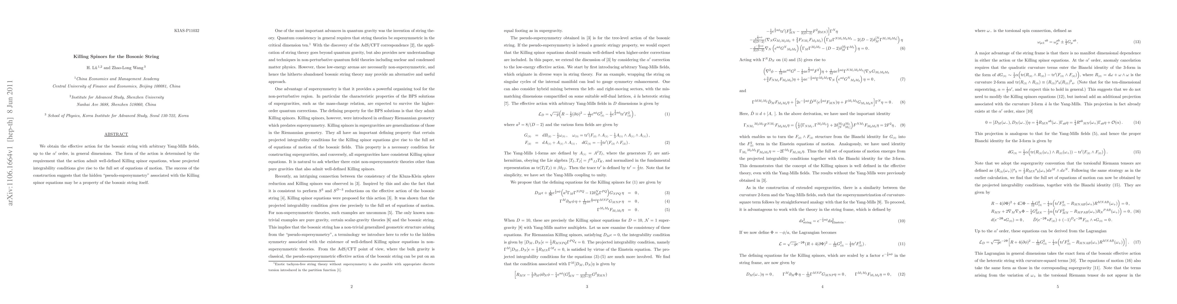 This paper derives the effective action for the bosonic string in the presence of Yang-Mills fields, ensuring it satisfies Killing spinor equations. The study suggests that the "pseudo-supersymmetry" linked to these equations might inherently characterize the bosonic string.