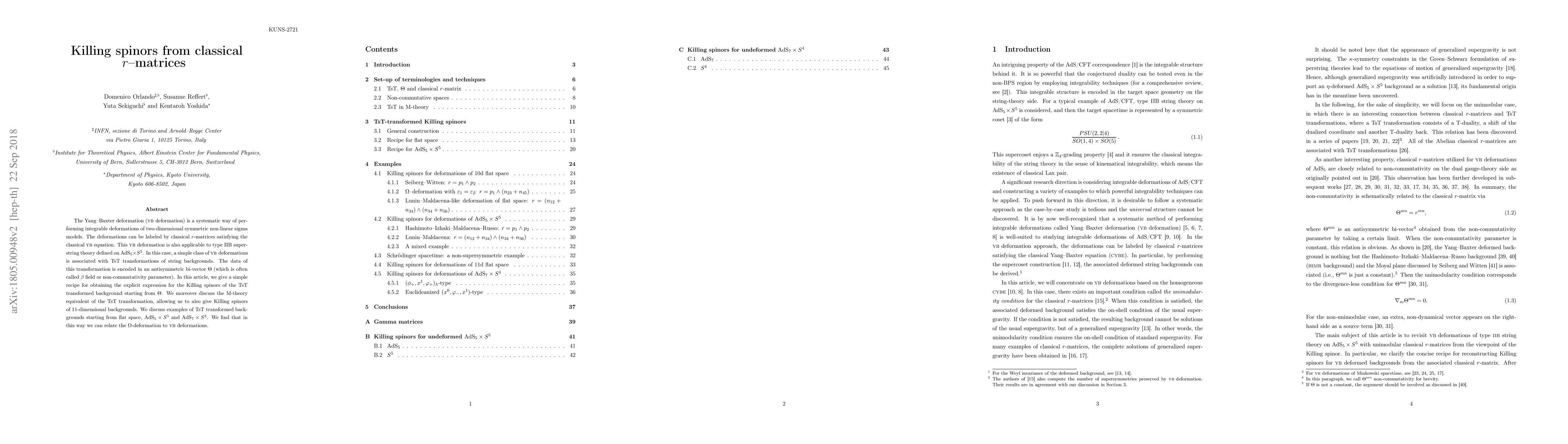 The Yang-Baxter (YB) deformation is a systematic way of performibg integrable deformations of two-dimensional symmetric non-linear sigma models. The deformations can be labeled by classical $r$-matrices satisfying the classical YB equation. This YB deformation is also applicable to type IIB superstring theory defined on $\mathrm{AdS}_5\times S^5$. In this case, a simple class of YB deformation is associated with TsT transformations of string backgrounds. The data of this transformation is encoded in an antisymmetric bi-vector $\Theta$ (which is often called $\beta$ field or non-commutativity parameter). In this article, we give a simple recipe for obtaining the explicit expression for the Killing spinors of the TsT transformed background starting from $\Theta$. We moreover discuss the M-theory equivalent of the TsT transformation, allowing us to also give Killing spinors of 11-dimensional backgrounds. We discuss examples of TsT transformed backgrounds starting from flat space, $\mathrm{AdS}_{5}\times S^5$ and $\mathrm{AdS}_{7}\times S^4$. We find that in this way we can relate the $\Omega$-deformation to YB deformations.