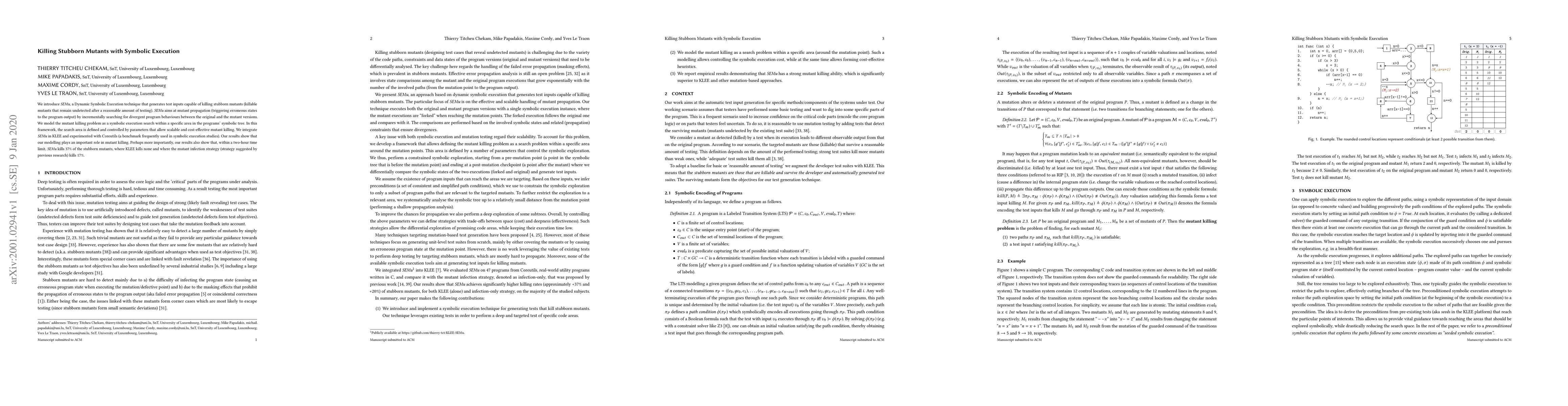 SeMu, a Dynamic Symbolic Execution technique, effectively kills stubborn mutants by incrementally searching for divergent behaviors between the original and mutant versions. Within a two-hour limit, SeMu kills 37% of stubborn mutants, outperforming KLEE and previous mutant infection strategies.