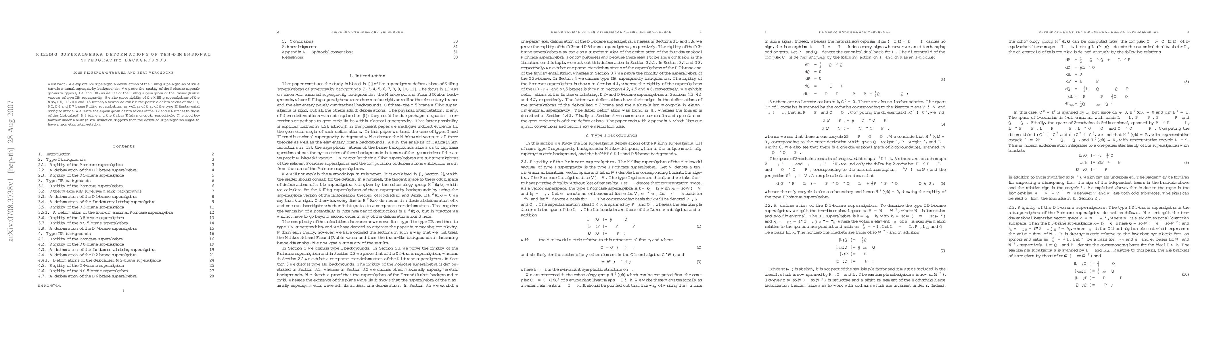 This paper examines Lie superalgebra deformations of Killing superalgebras in ten-dimensional supergravity backgrounds, proving rigidity for certain superalgebras and identifying possible deformations for others, suggesting geometric interpretations for the deformed superalgebras.