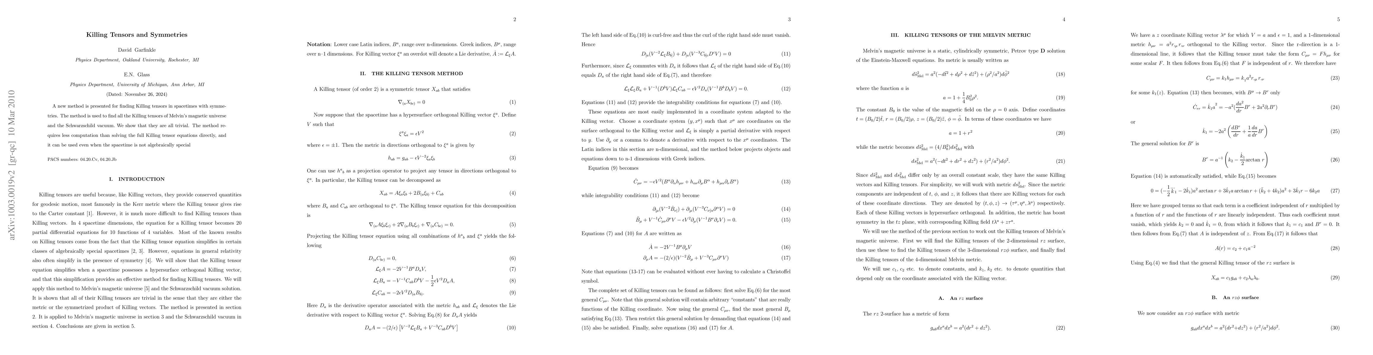 This paper introduces a novel method for identifying Killing tensors in symmetric spacetimes, applying it to Melvin's magnetic universe and Schwarzschild vacuum, where it reveals no nontrivial Killing tensors. The method is computationally efficient and applicable even to non-algebraically special spacetimes.